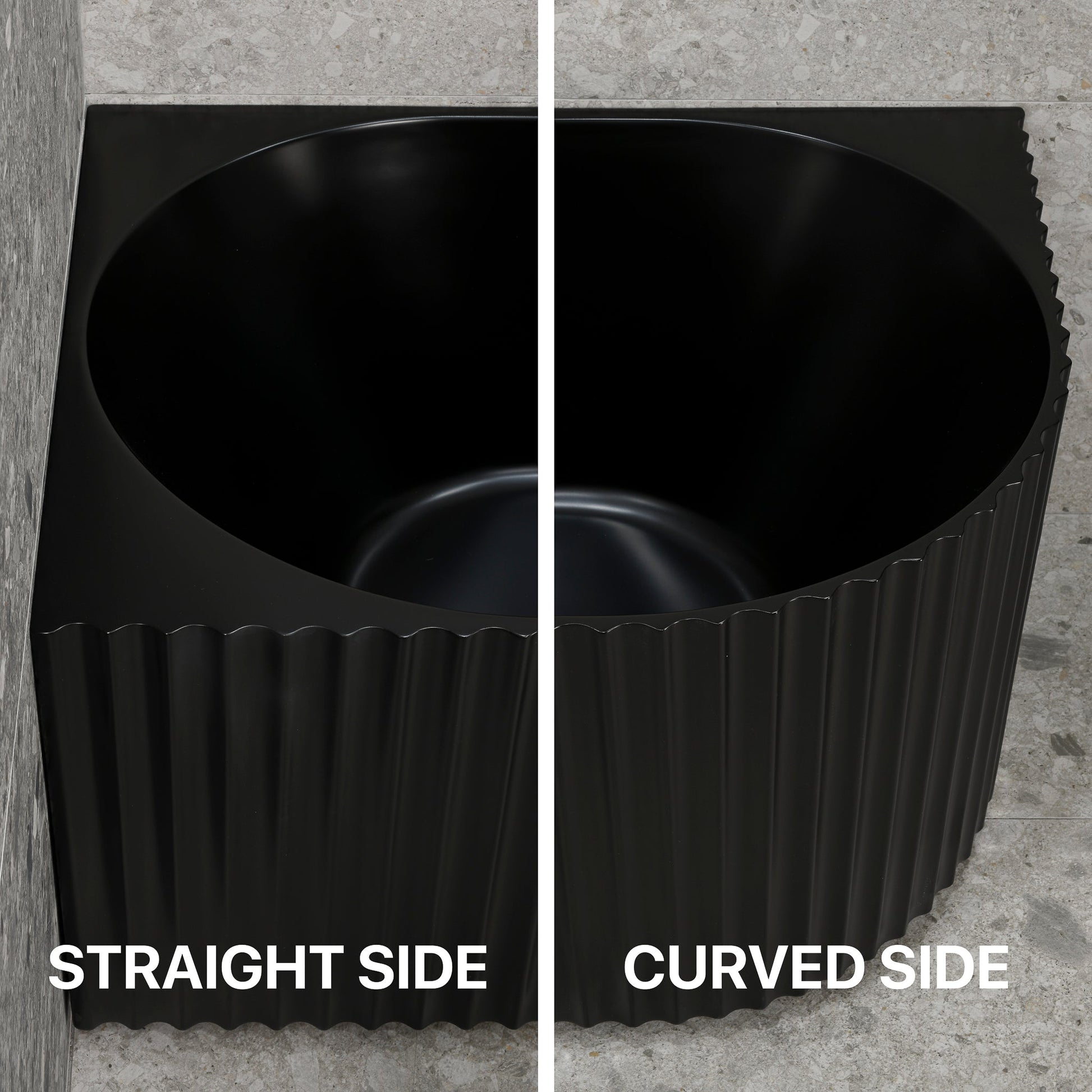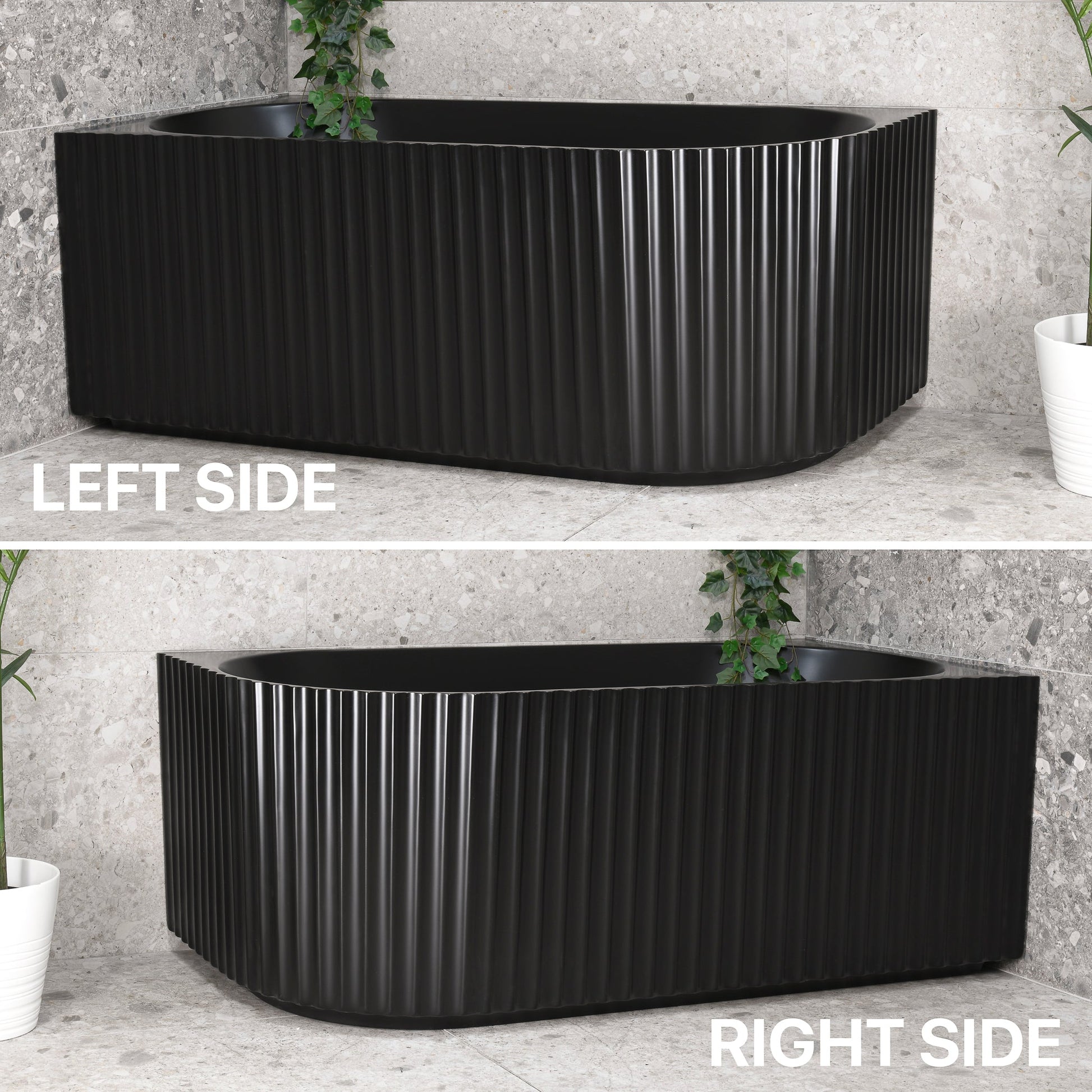 Agora Groove 59 inch Acrylic Freestanding Left Corner Bathtub, Matte Black