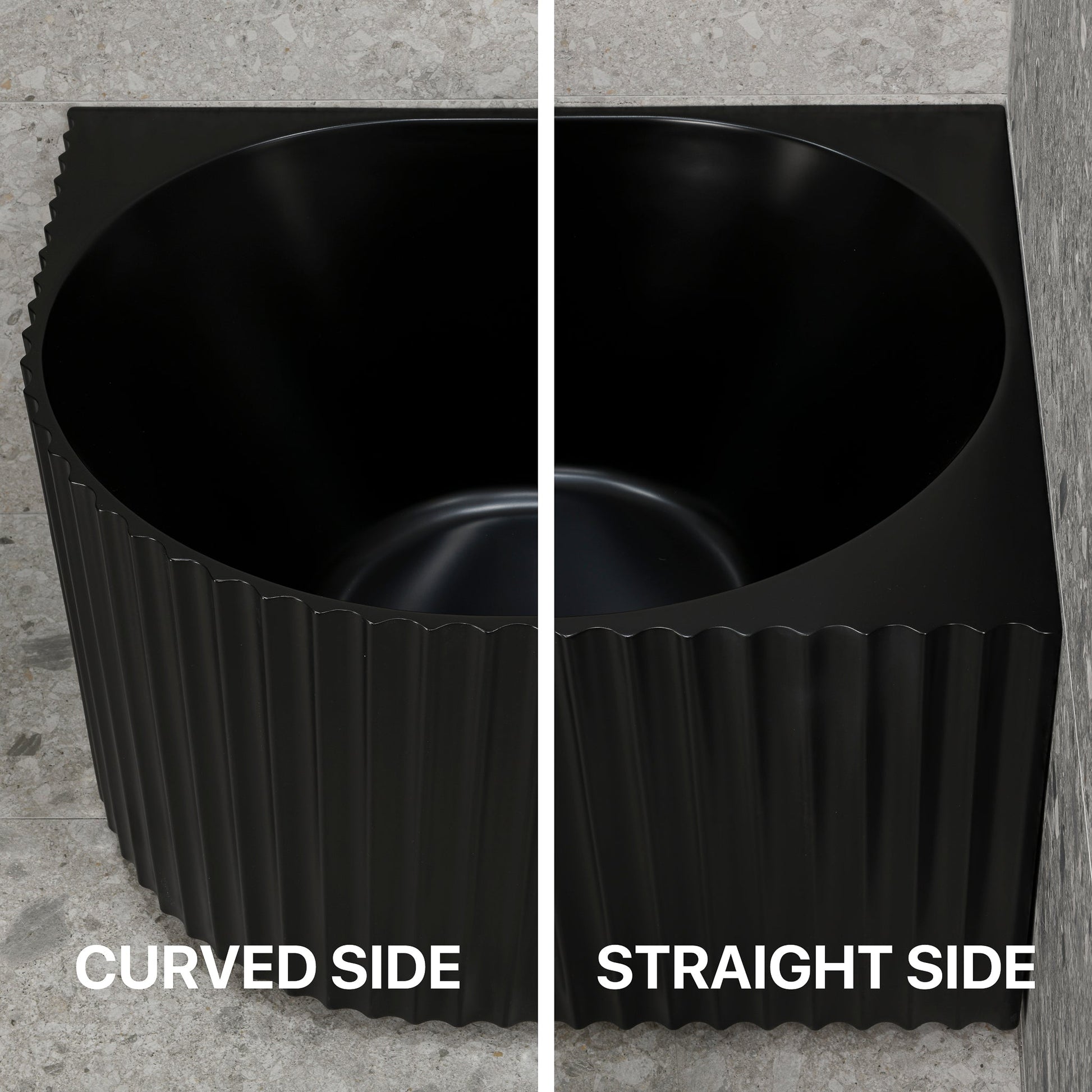 Agora Groove 59 inch Acrylic Freestanding Right Corner Bathtub, Matte Black