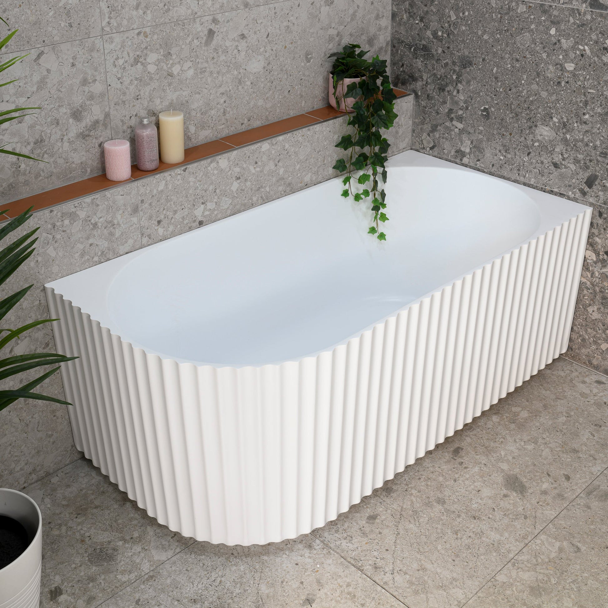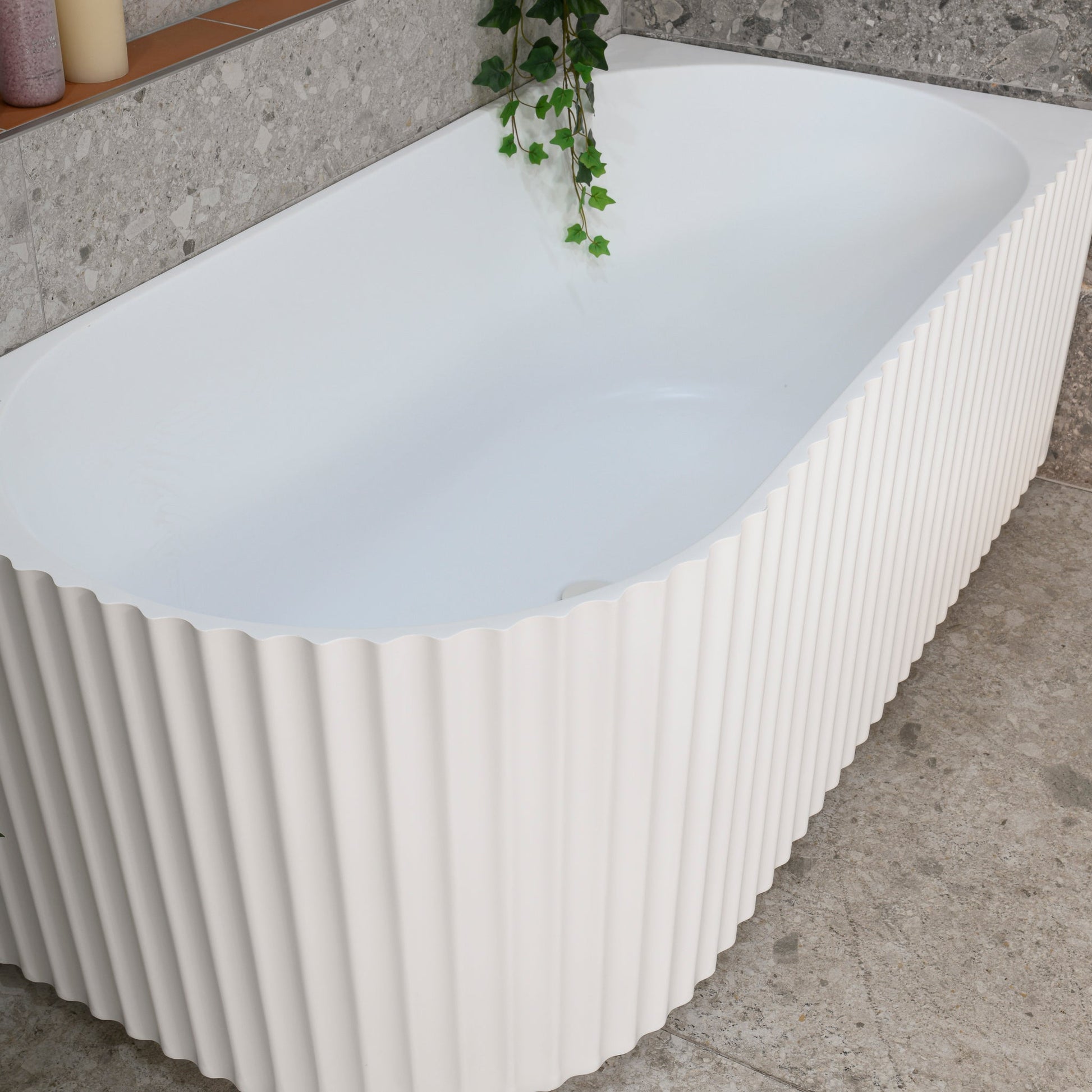 Enflair's Agora Groove fluted corner bath collection features eclectic design inspired by classical architecture, with decorative fluting reminiscent of the stone pillars which is perfect in any corner of your bathroom.