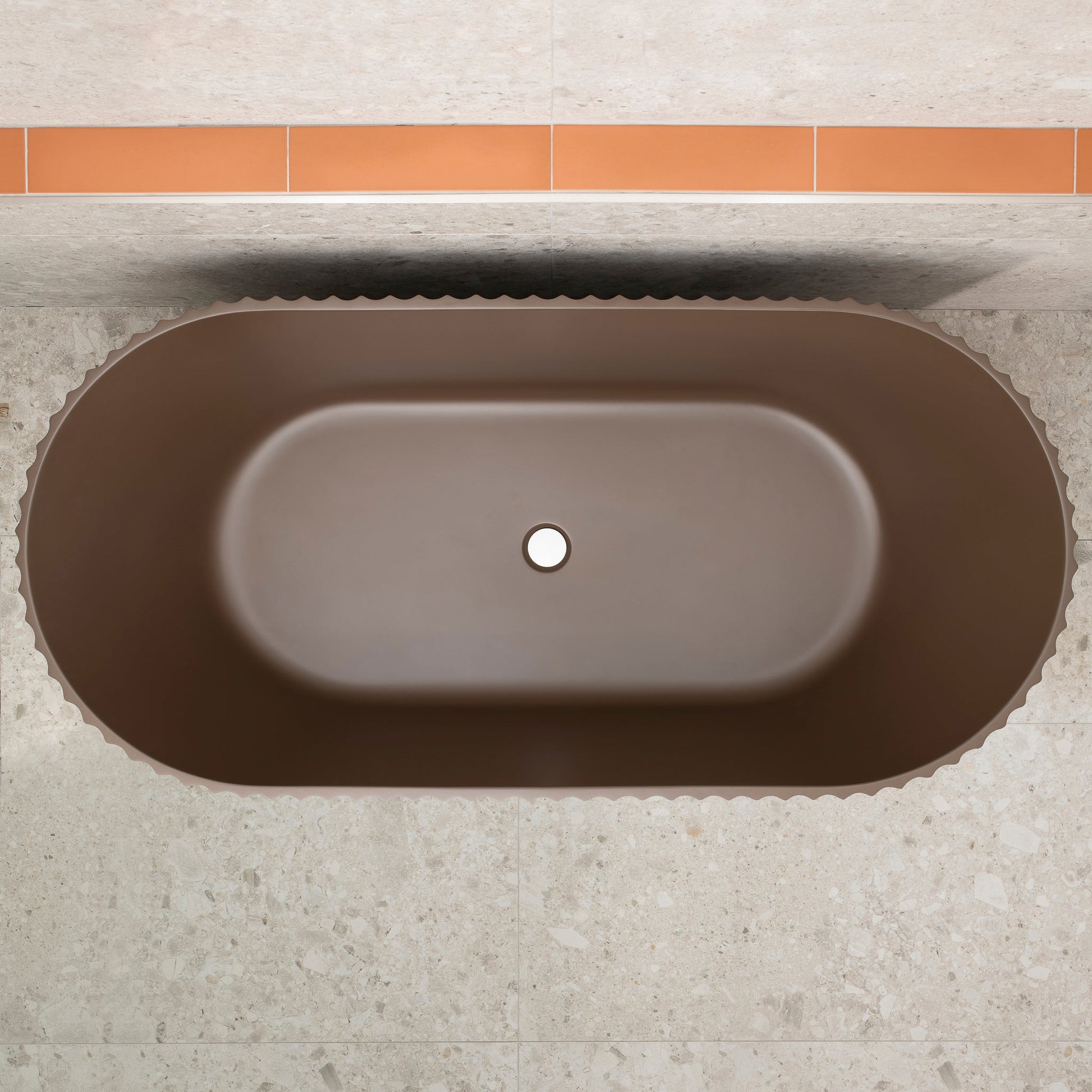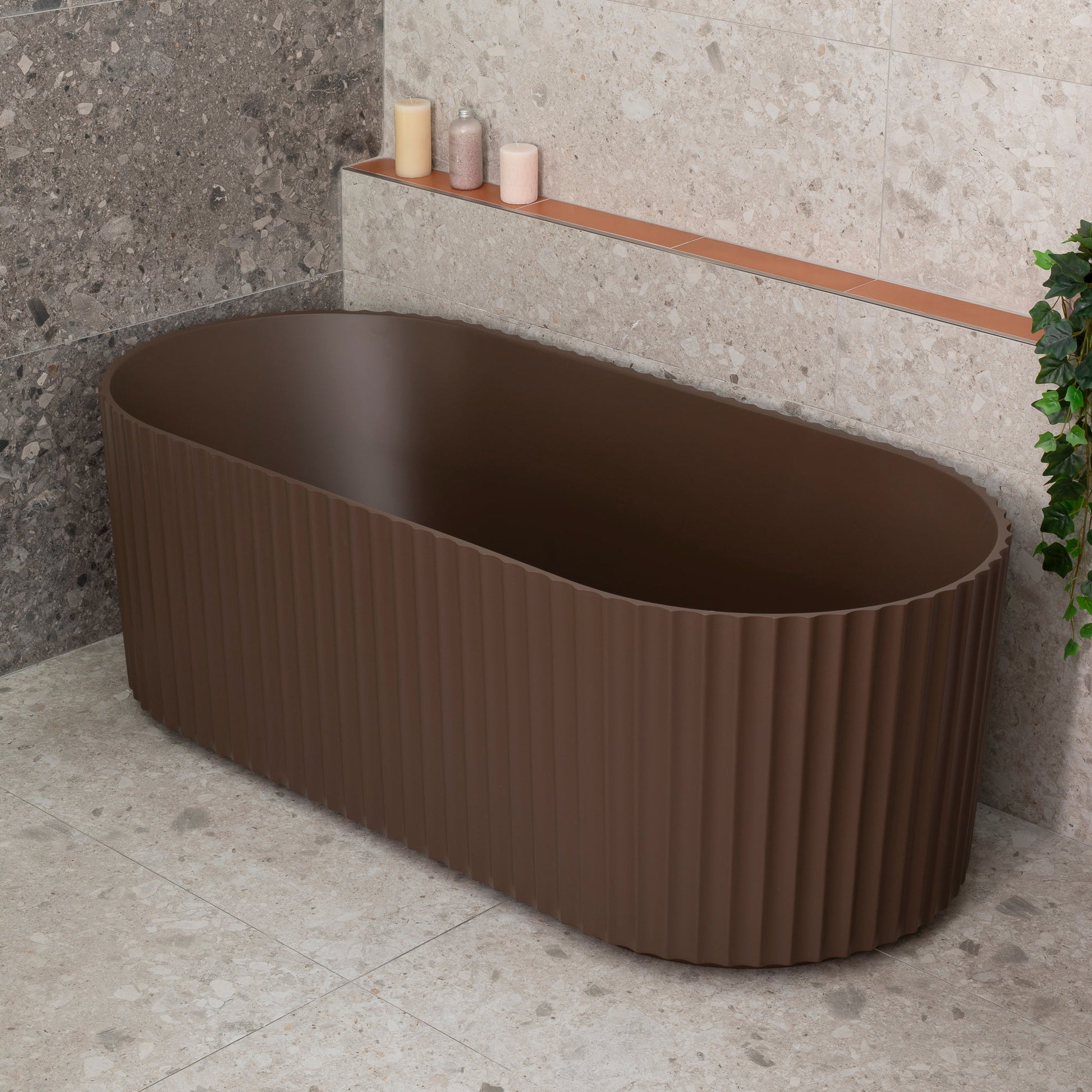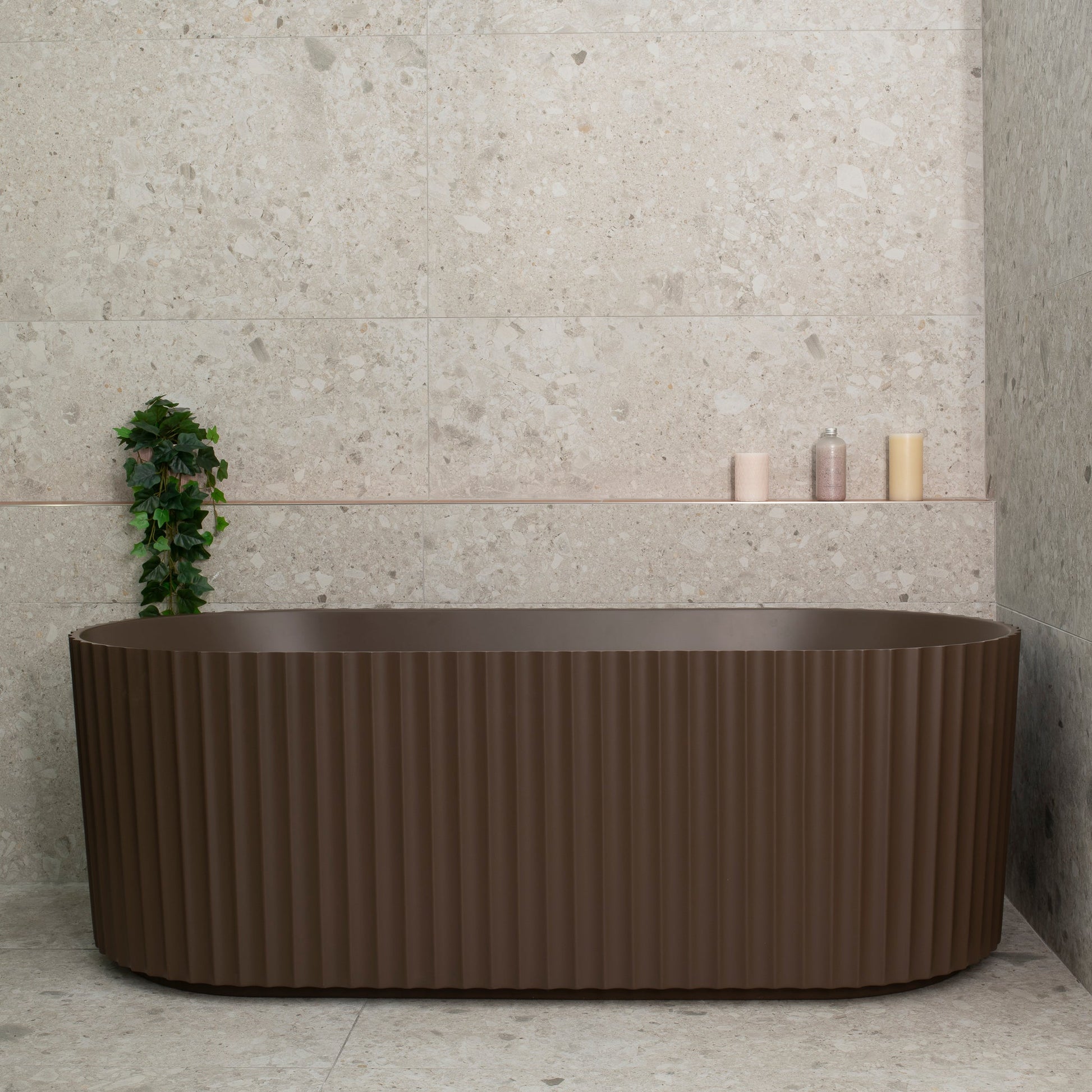 Agora Groove 67 inch Acrylic Freestanding Fluted Oval Freestanding Bathtub, Matte Chocolate Brown - SPECIAL EDITION