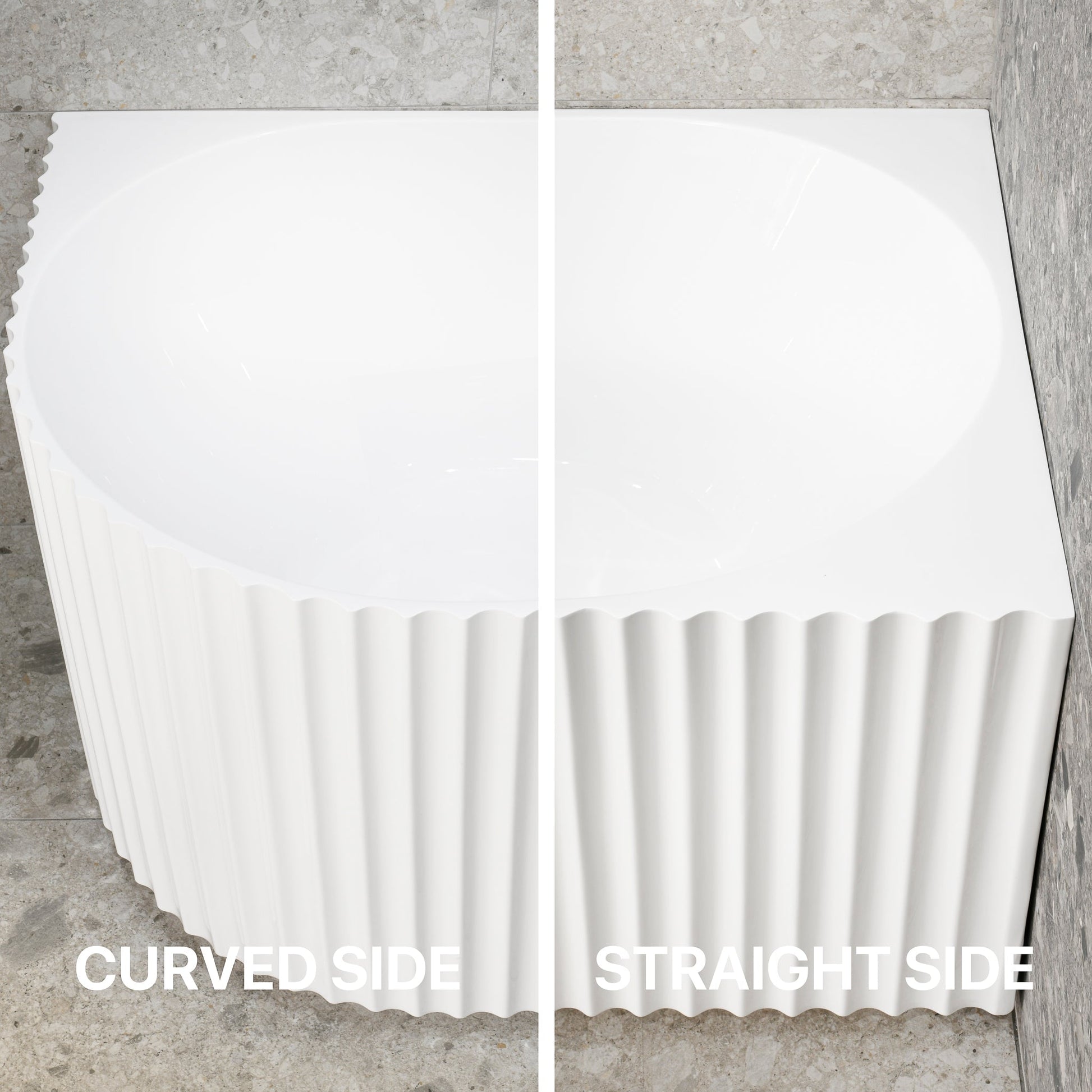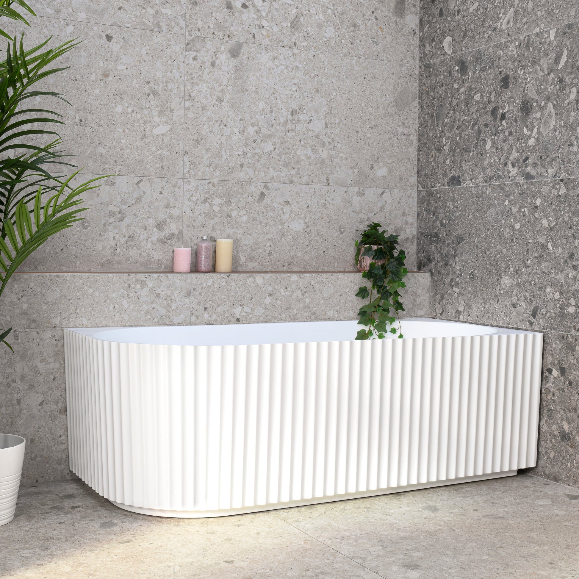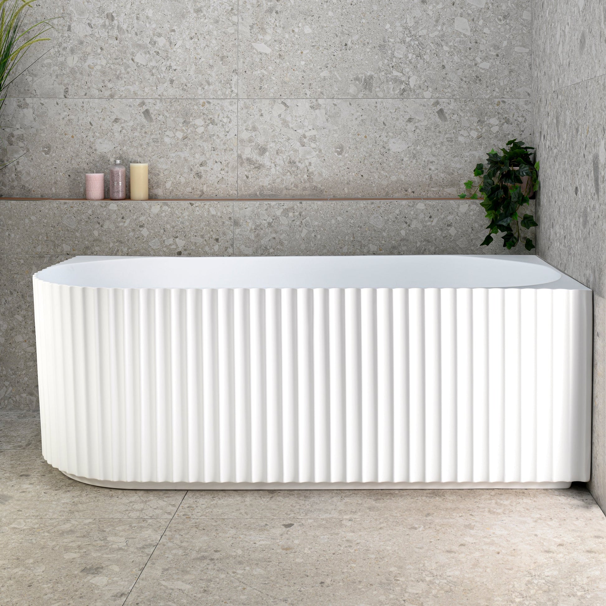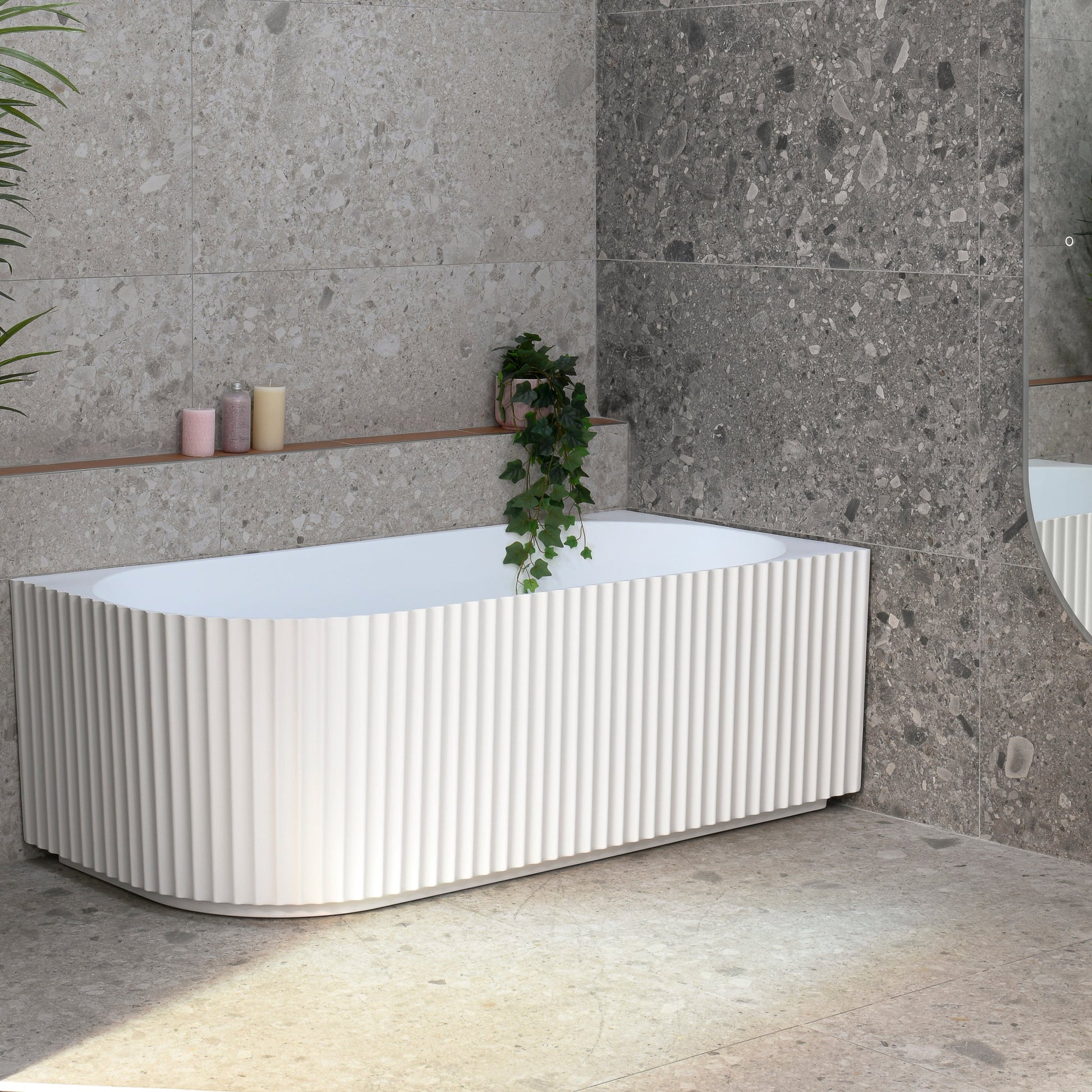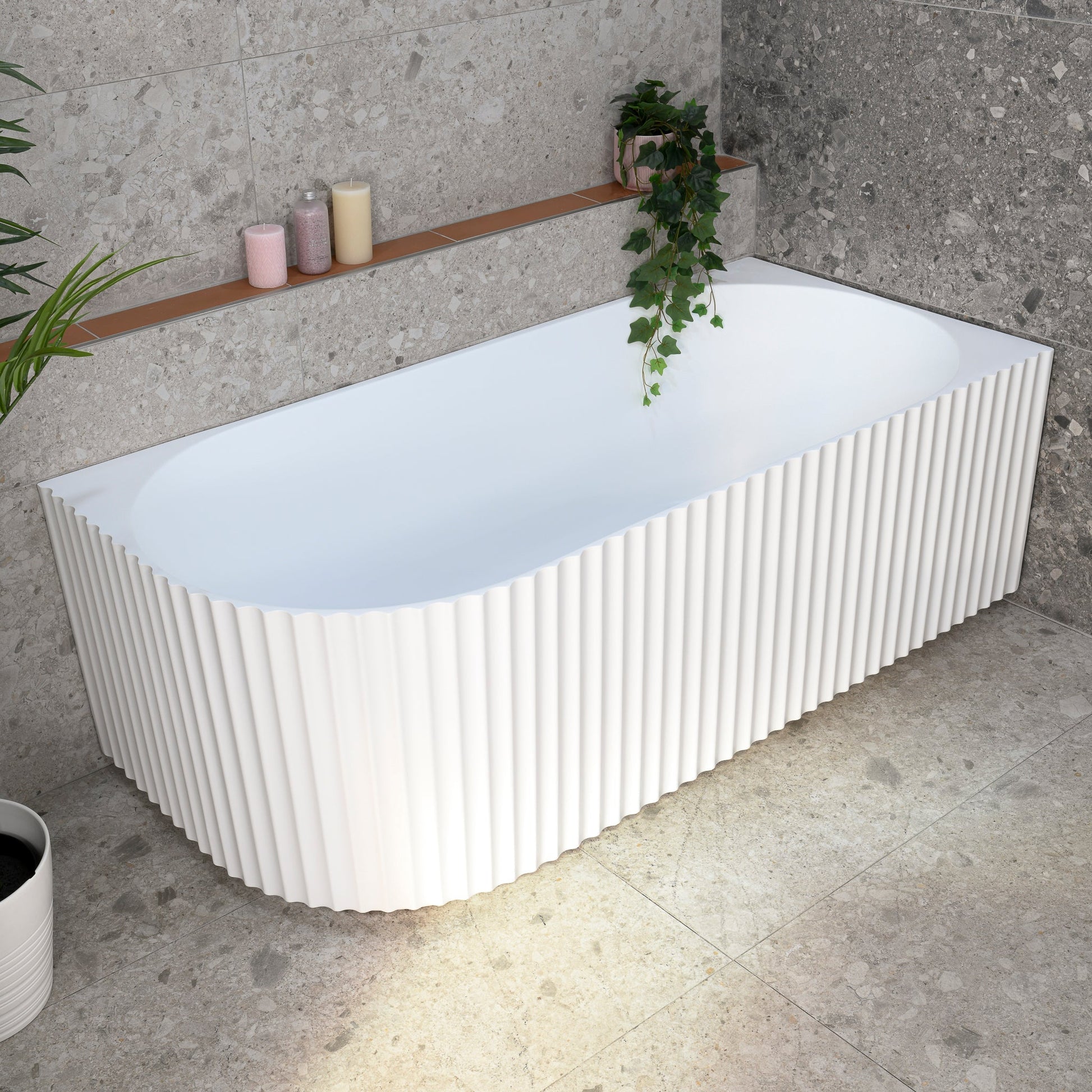 Enflair's Agora Groove fluted corner bath collection features eclectic design inspired by classical architecture, with decorative fluting reminiscent of the stone pillars which is perfect in any corner of your bathroom.