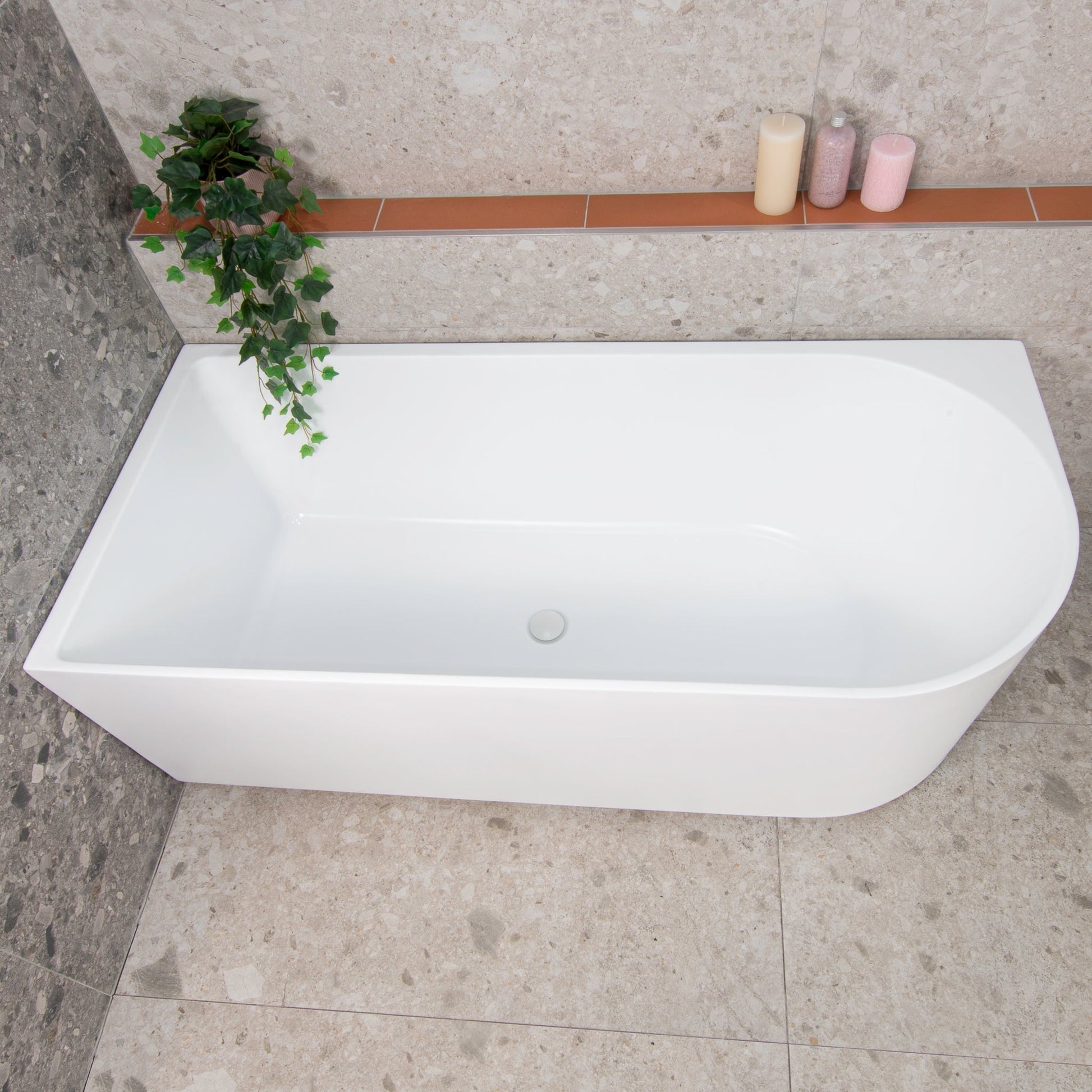 A brand new release! The Arco freestanding corner bath is available in right and left corner fit. With a rectangular shaped bottom on one side, this corner bath can be retrofitted with a shower and shower screen, as seen on the sample photos.