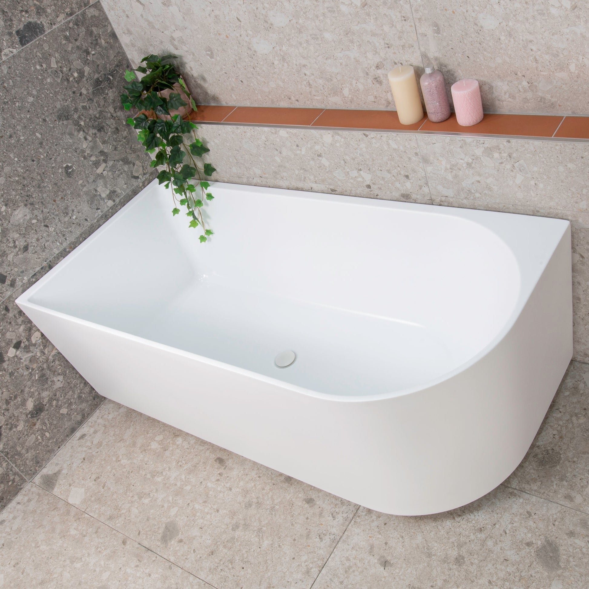 A brand new release! The Arco freestanding corner bath is available in right and left corner fit. With a rectangular shaped bottom on one side, this corner bath can be retrofitted with a shower and shower screen, as seen on the sample photos.