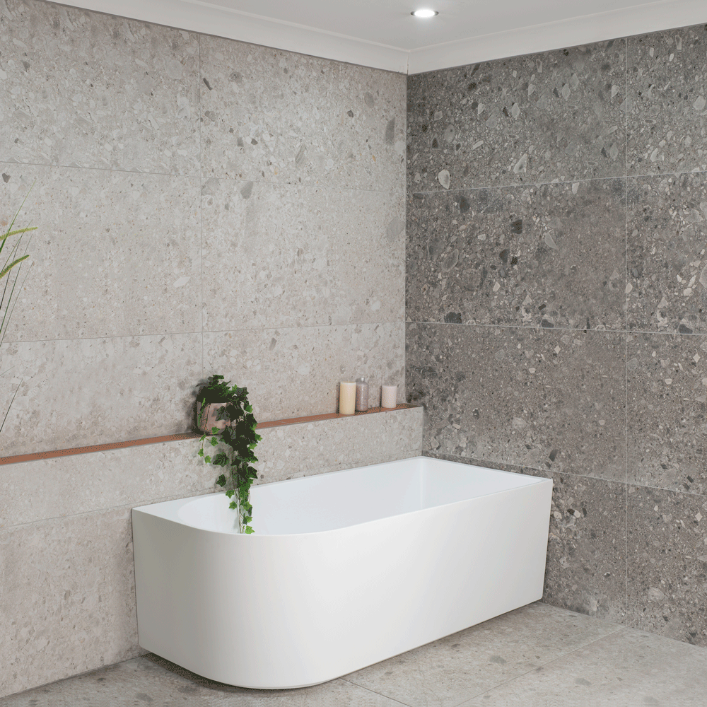 A brand new release! The Arco freestanding corner bath is available in right and left corner fit. With a rectangular shaped bottom on one side, this corner bath can be retrofitted with a shower and shower screen, as seen on the sample photos.