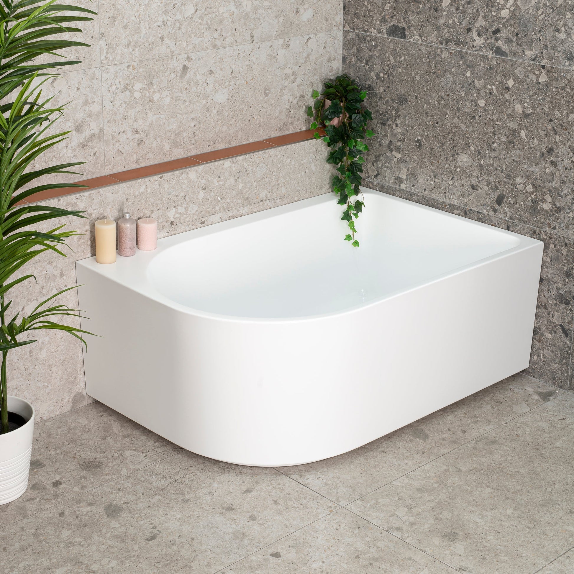 Arco Plus 55 inch Acrylic Freestanding Right Corner Bathtub, Matte White