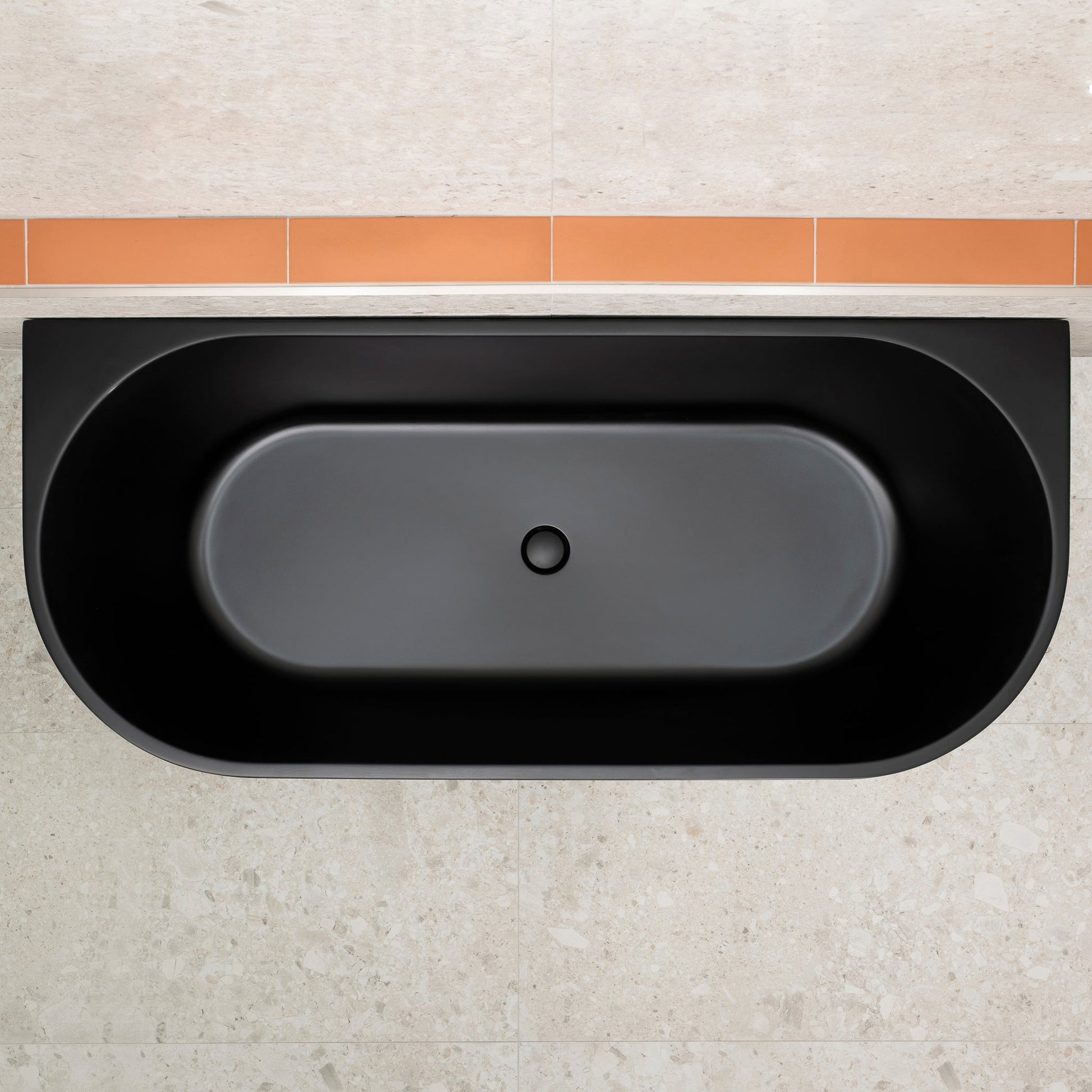 Curved beauty, the Avalon back to wall freestanding bath has a nice oval shape that curves with your back, making it one of the most comfortable baths.