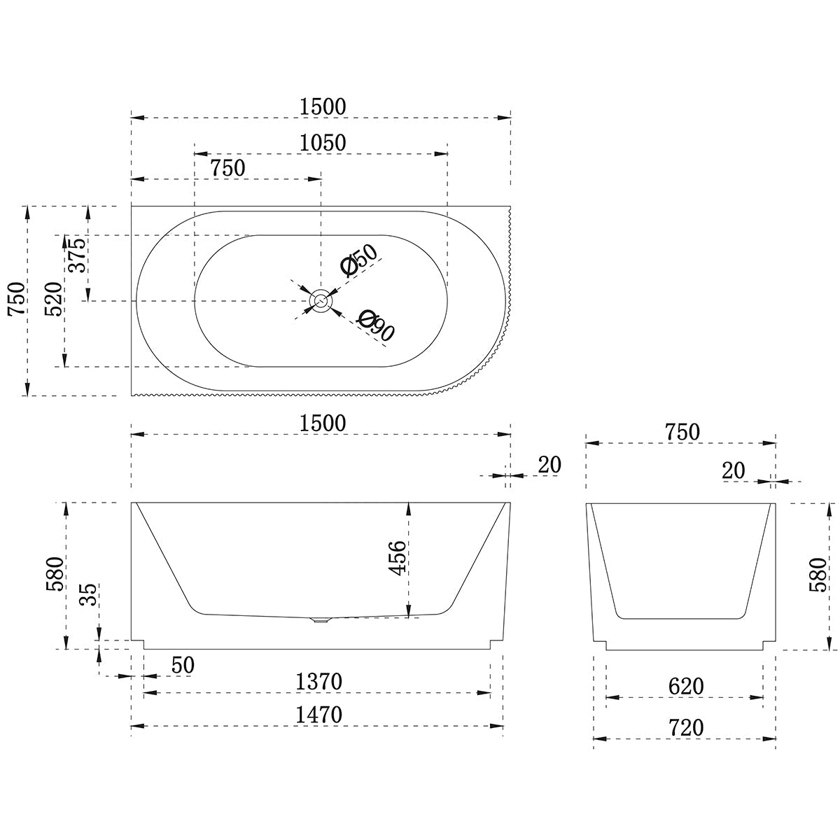 Brighton Groove 59 inch Acrylic Freestanding Right Corner Bathtub, Gloss White