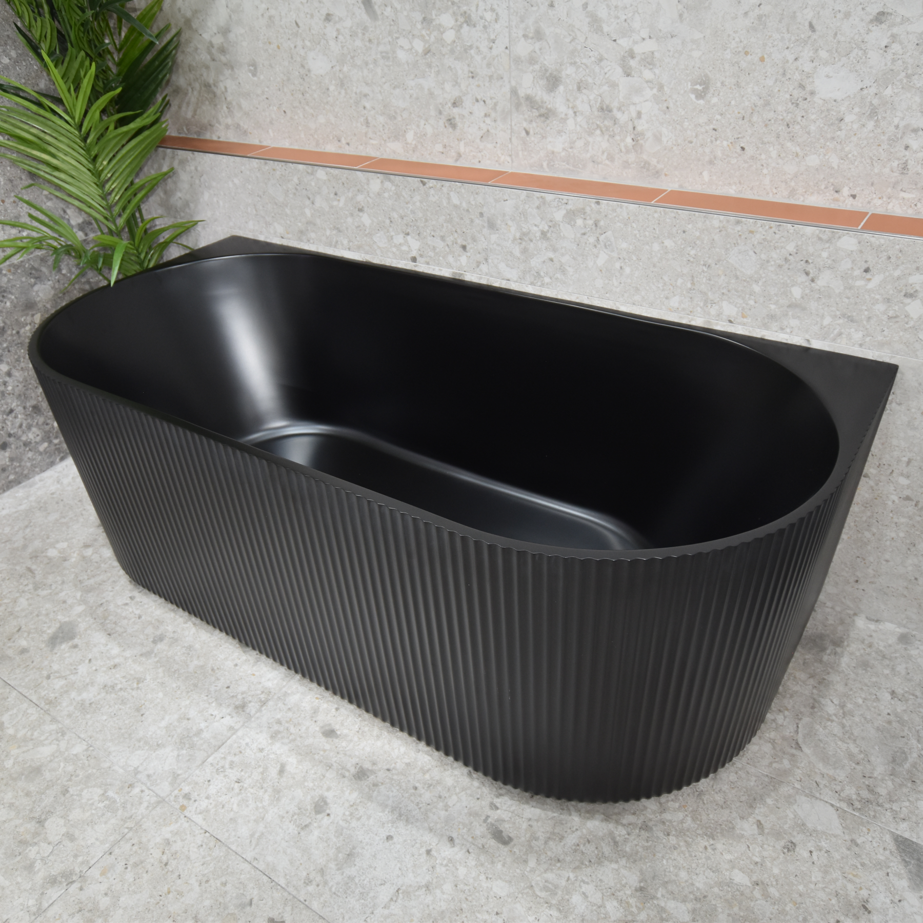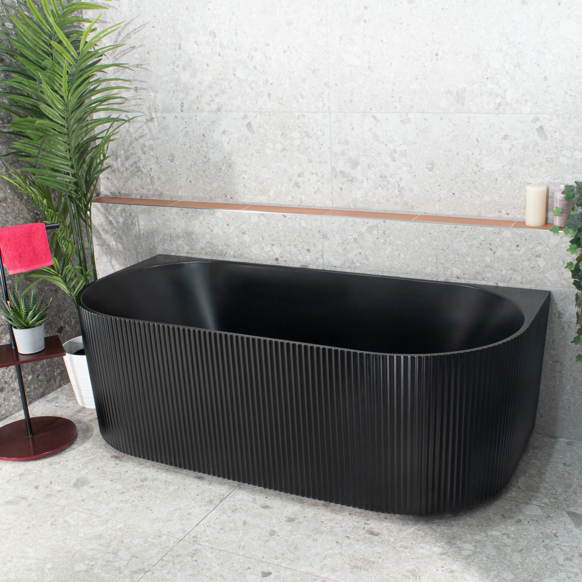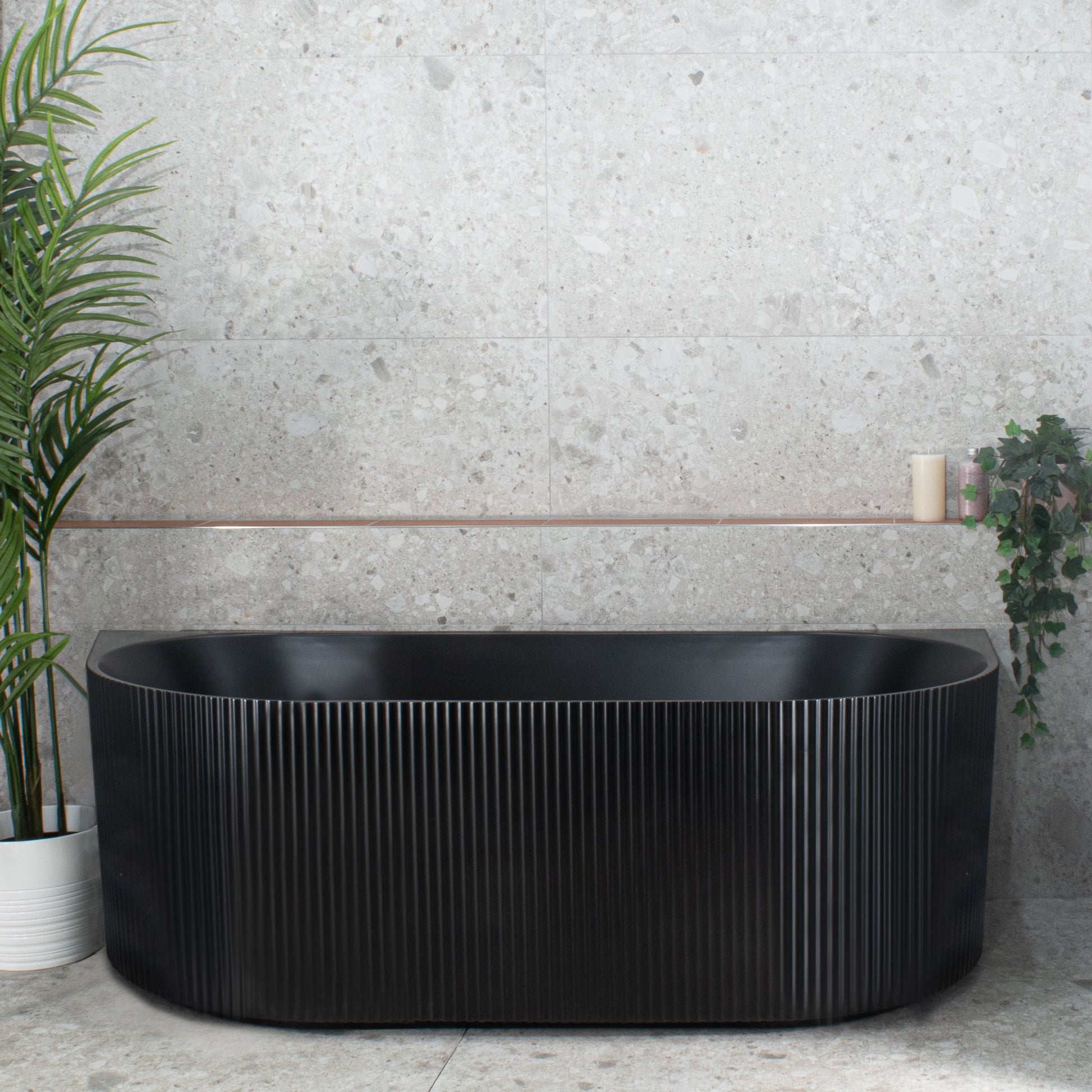 The beloved back to wall Brighton bath with beautiful vertical grooves and a back to wall design.