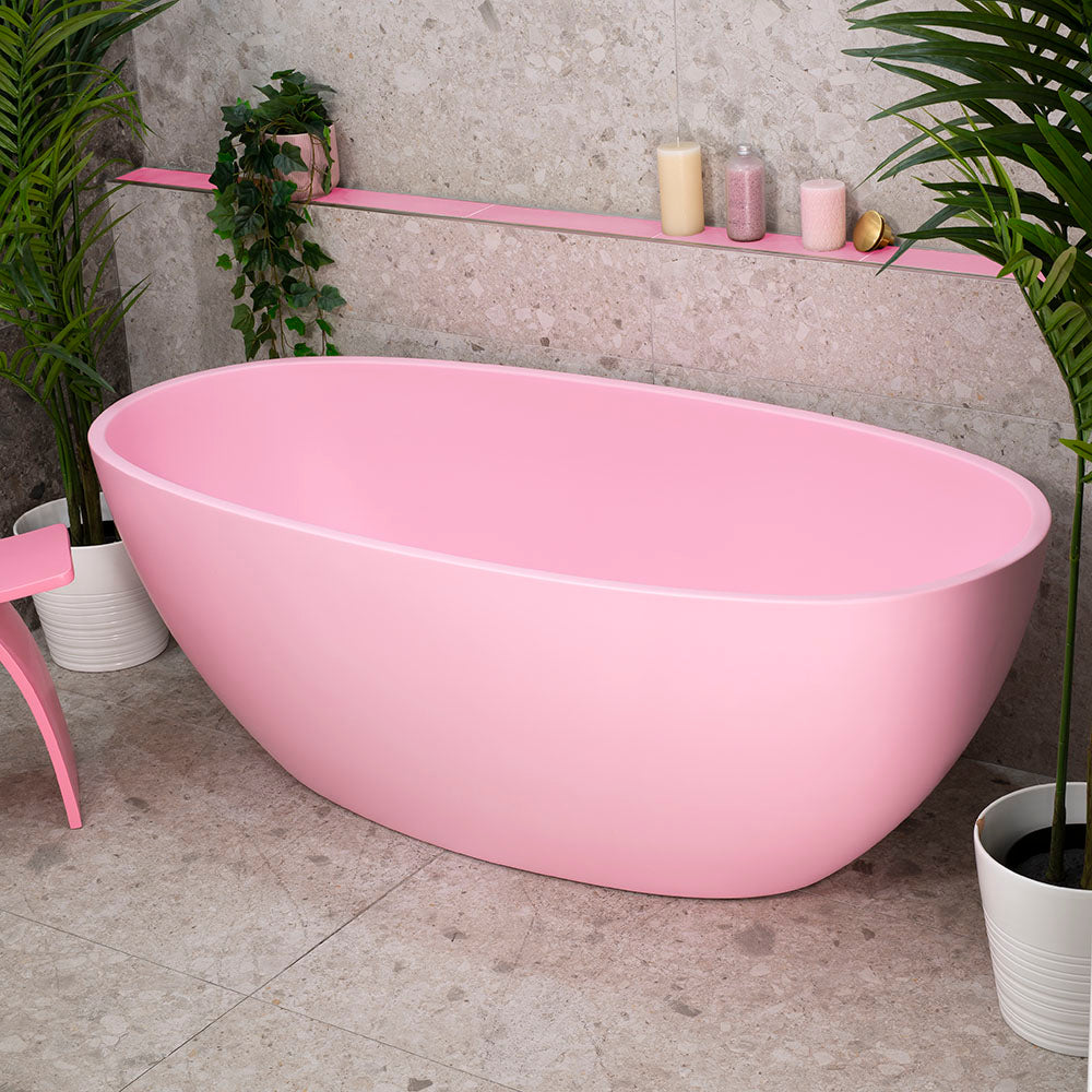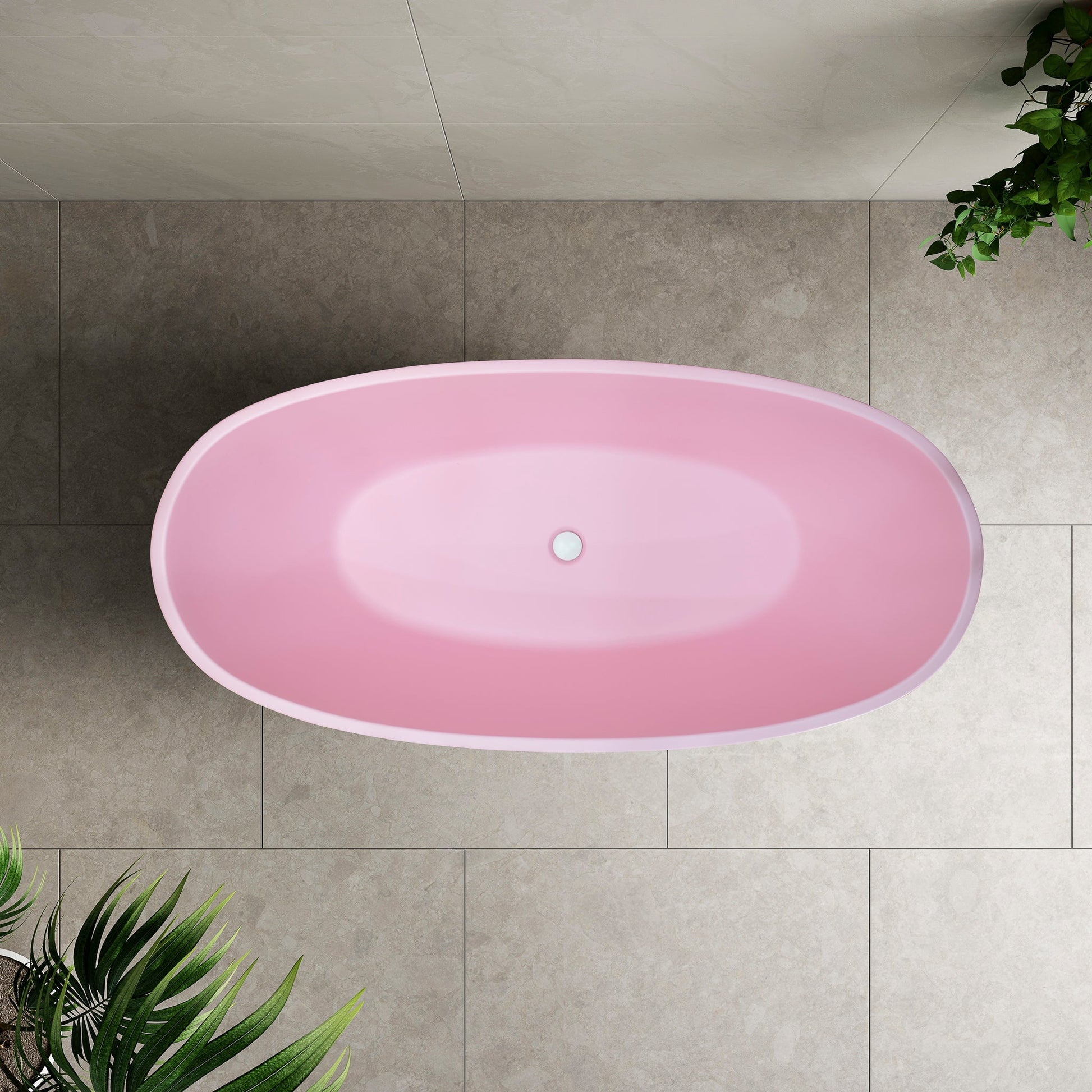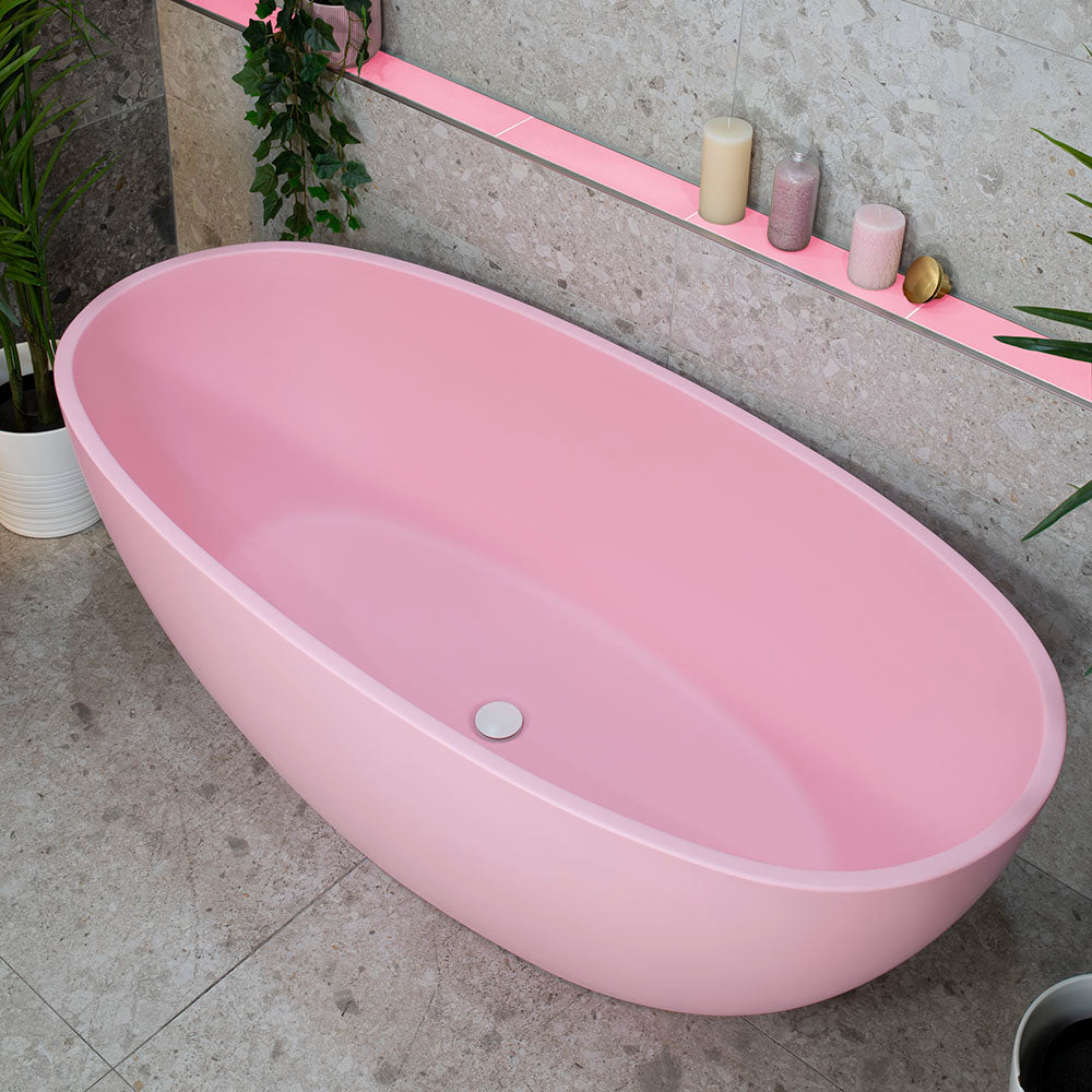 Byron Egg 63 inch Acrylic Freestanding Oval Bathtub, Matte Light Pink