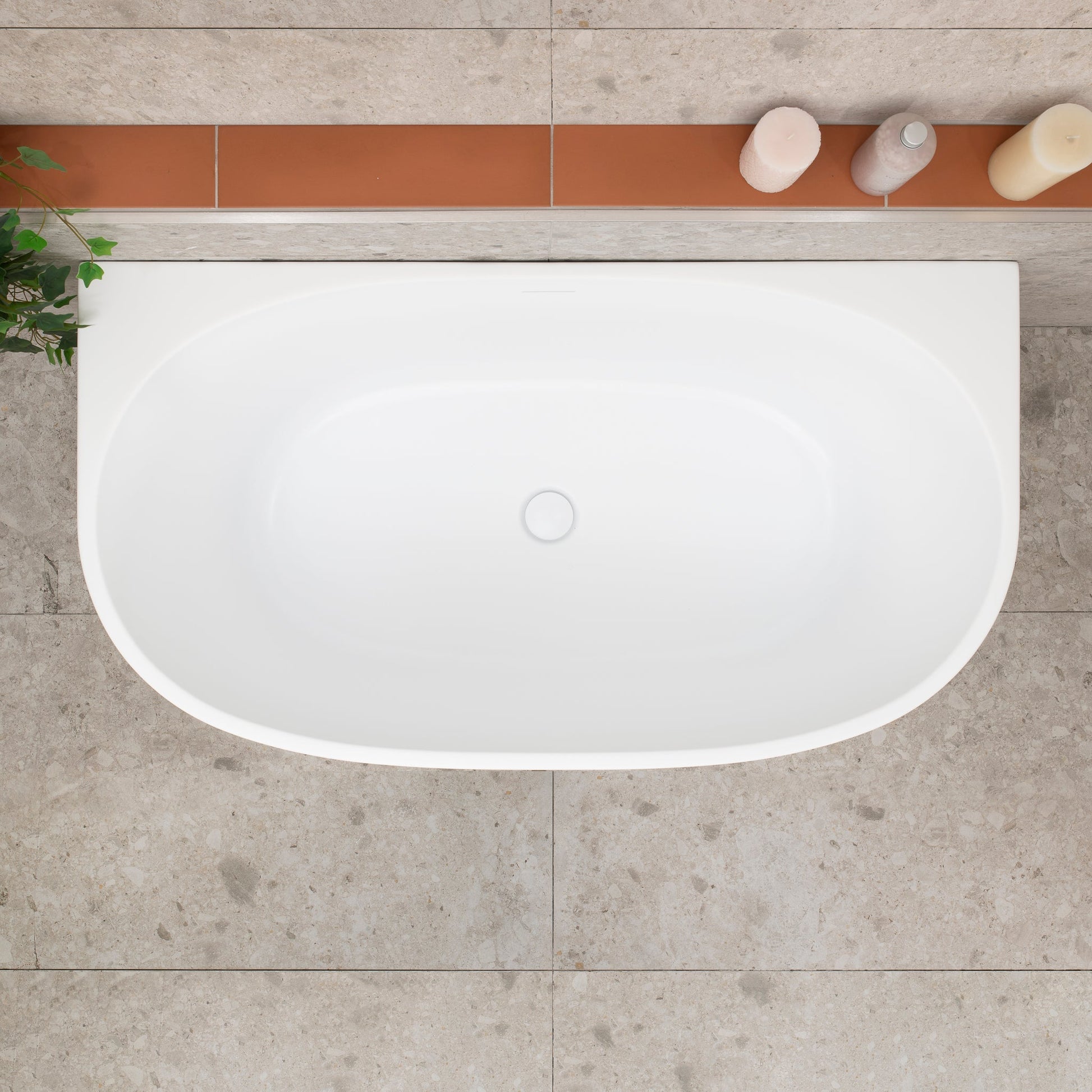 Byron Egg 47 inch Acrylic Freestanding Back to Wall Bathtub, Matte White