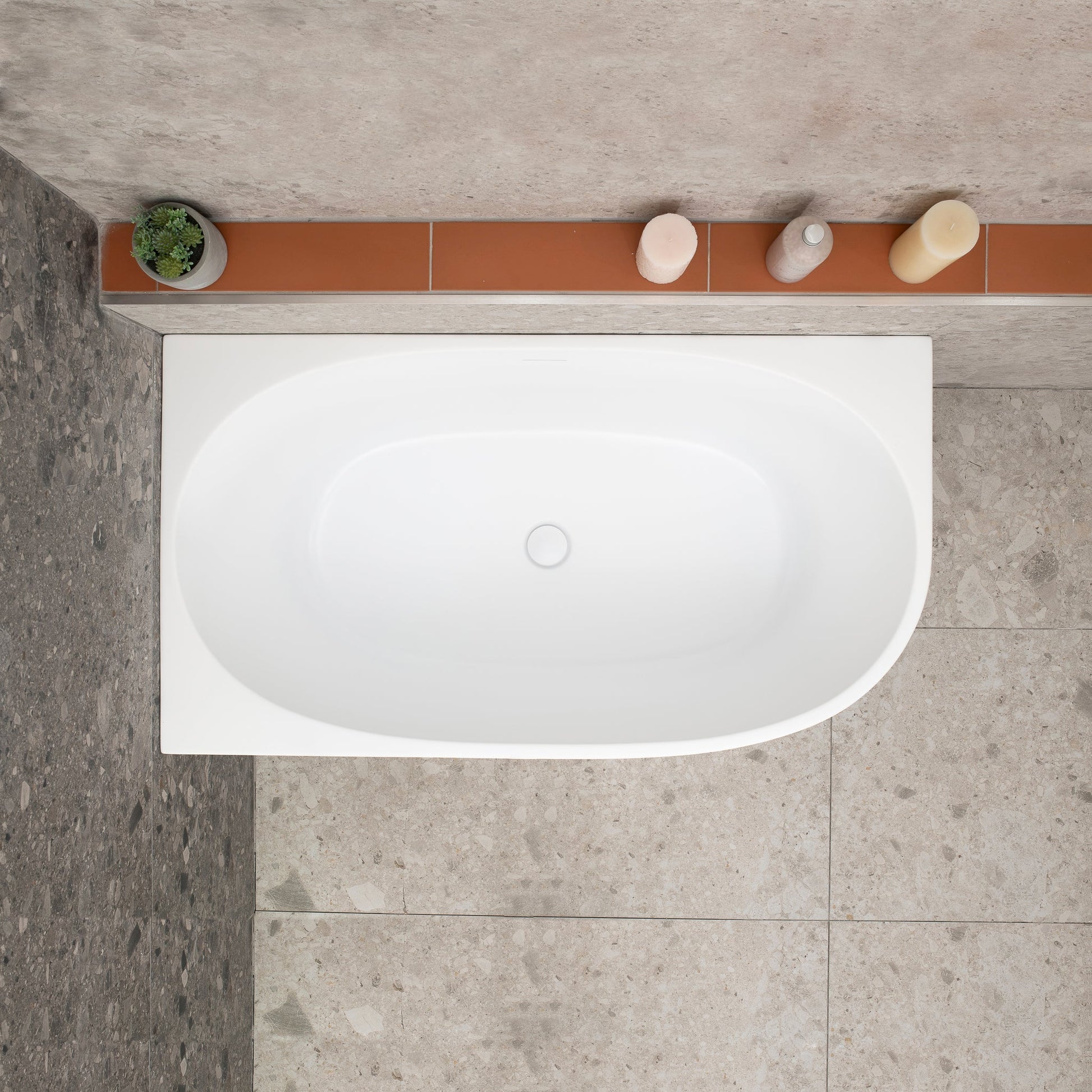 The unique curves of this corner bathtub embodies a harmonious blend of contemporary design and luxurious functionality. Perfectly positioned in a corner, it optimises space utilisation without compromising on aesthetics. With its innovative design and practical features, the Byron Egg corner bathtub is a symbol of refined relaxation and timeless beauty.