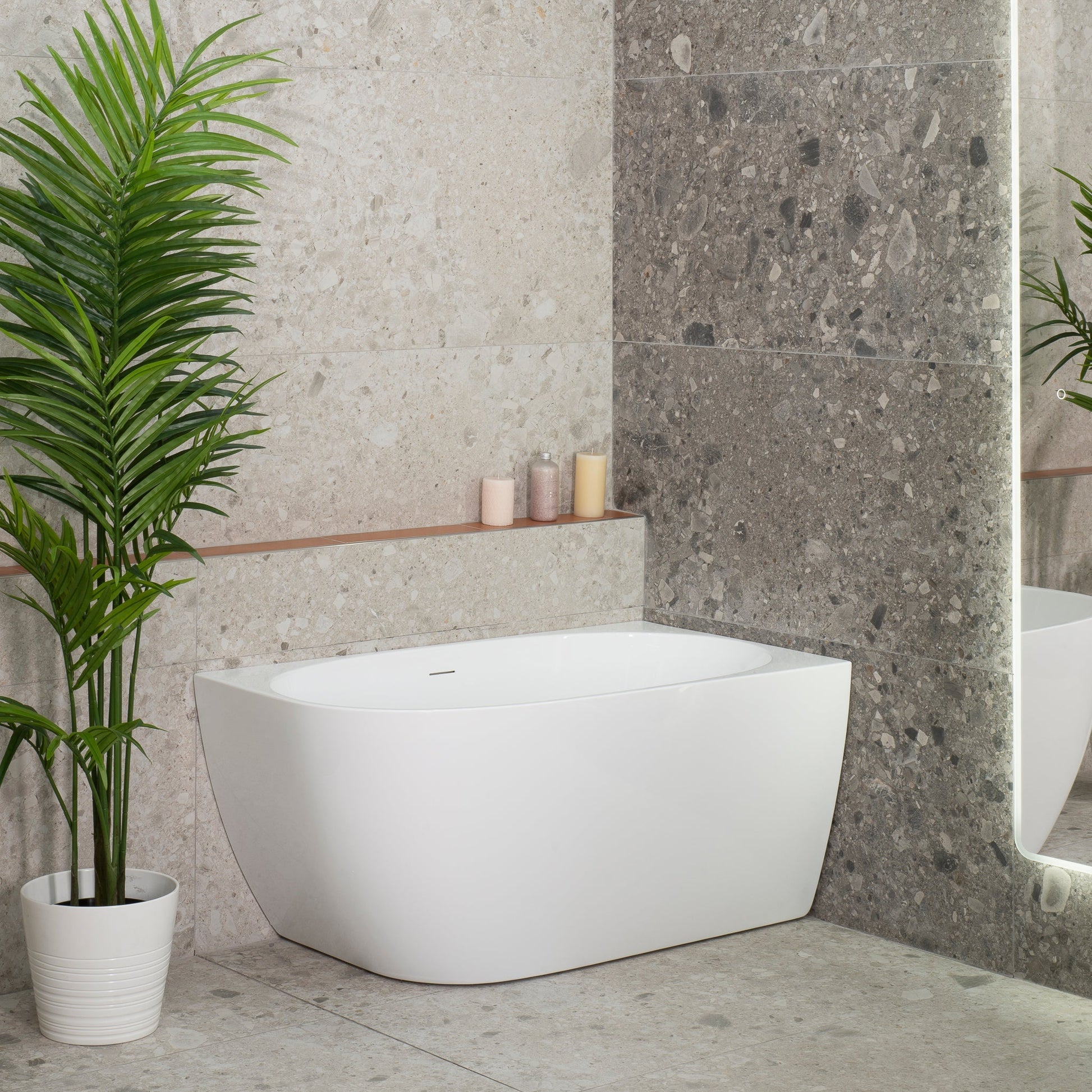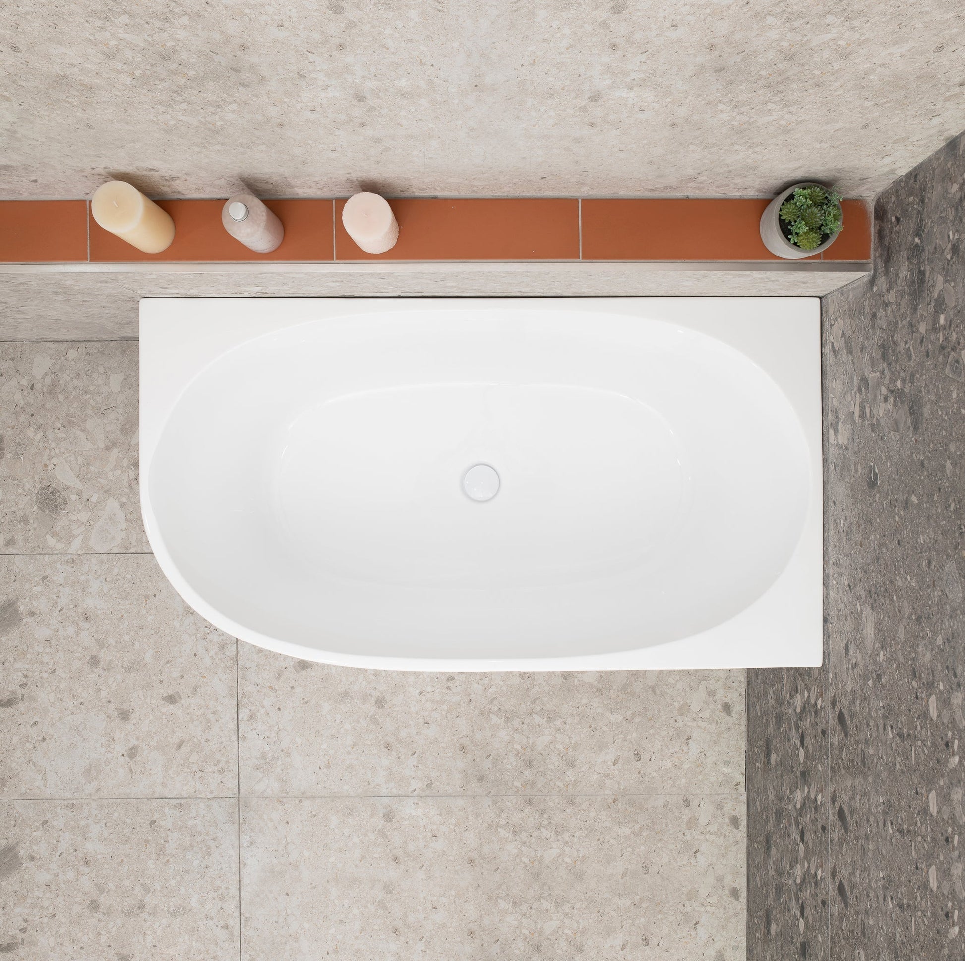 The unique curves of this corner bathtub embodies a harmonious blend of contemporary design and luxurious functionality. Perfectly positioned in a corner, it optimises space utilisation without compromising on aesthetics. With its innovative design and practical features, the Byron Egg corner bathtub is a symbol of refined relaxation and timeless beauty.