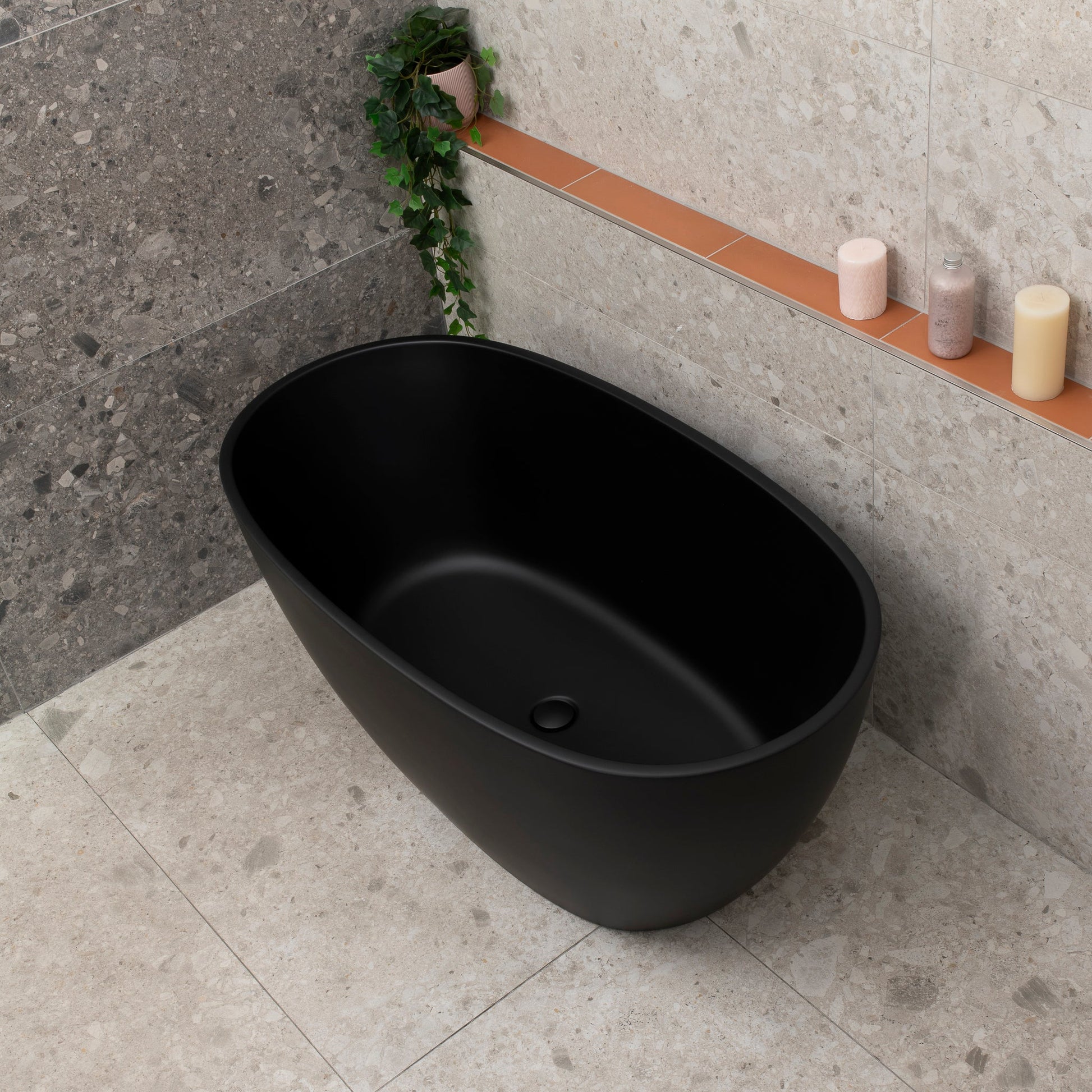 Byron Egg 51 inch Acrylic Freestanding Oval Bathtub, Matte Black