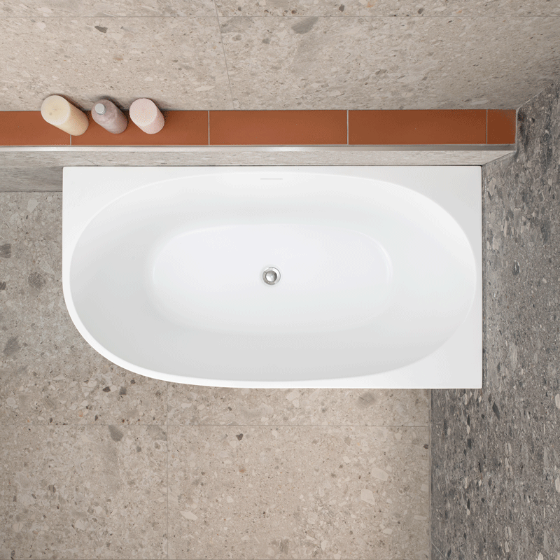 The unique curves of this corner bathtub embodies a harmonious blend of contemporary design and luxurious functionality. Perfectly positioned in a corner, it optimises space utilisation without compromising on aesthetics. With its innovative design and practical features, the Byron Egg corner bathtub is a symbol of refined relaxation and timeless beauty.