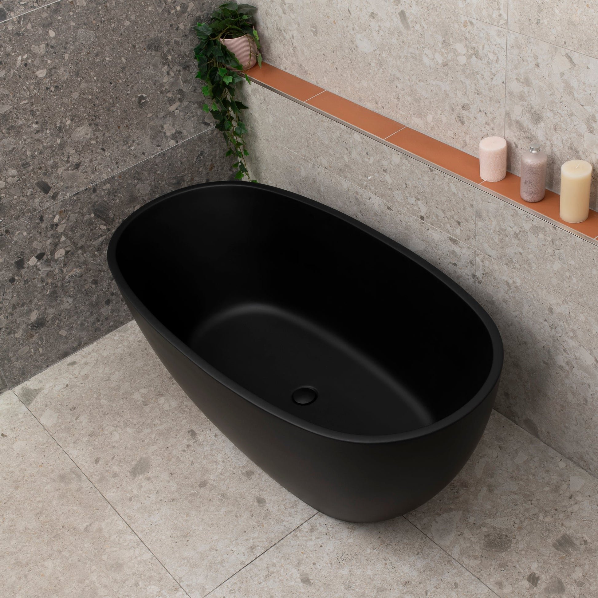 Byron Egg 55 inch Acrylic Freestanding Oval Bathtub, Matte Black