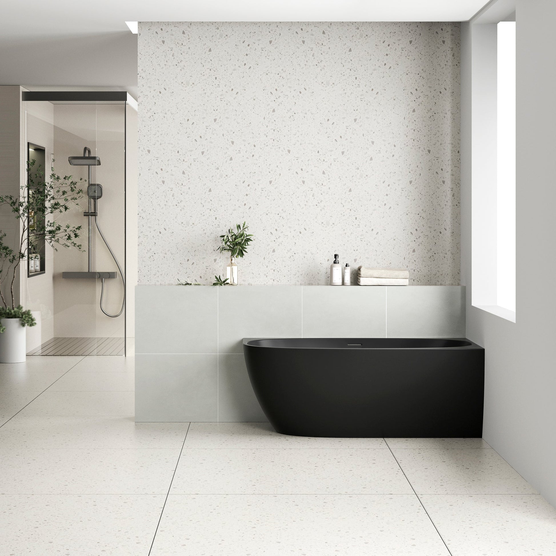 The unique curves of this corner bathtub embodies a harmonious blend of contemporary design and luxurious functionality. Perfectly positioned in a corner, it optimises space utilisation without compromising on aesthetics. With its innovative design and practical features, the Byron Egg corner bathtub is a symbol of refined relaxation and timeless beauty.