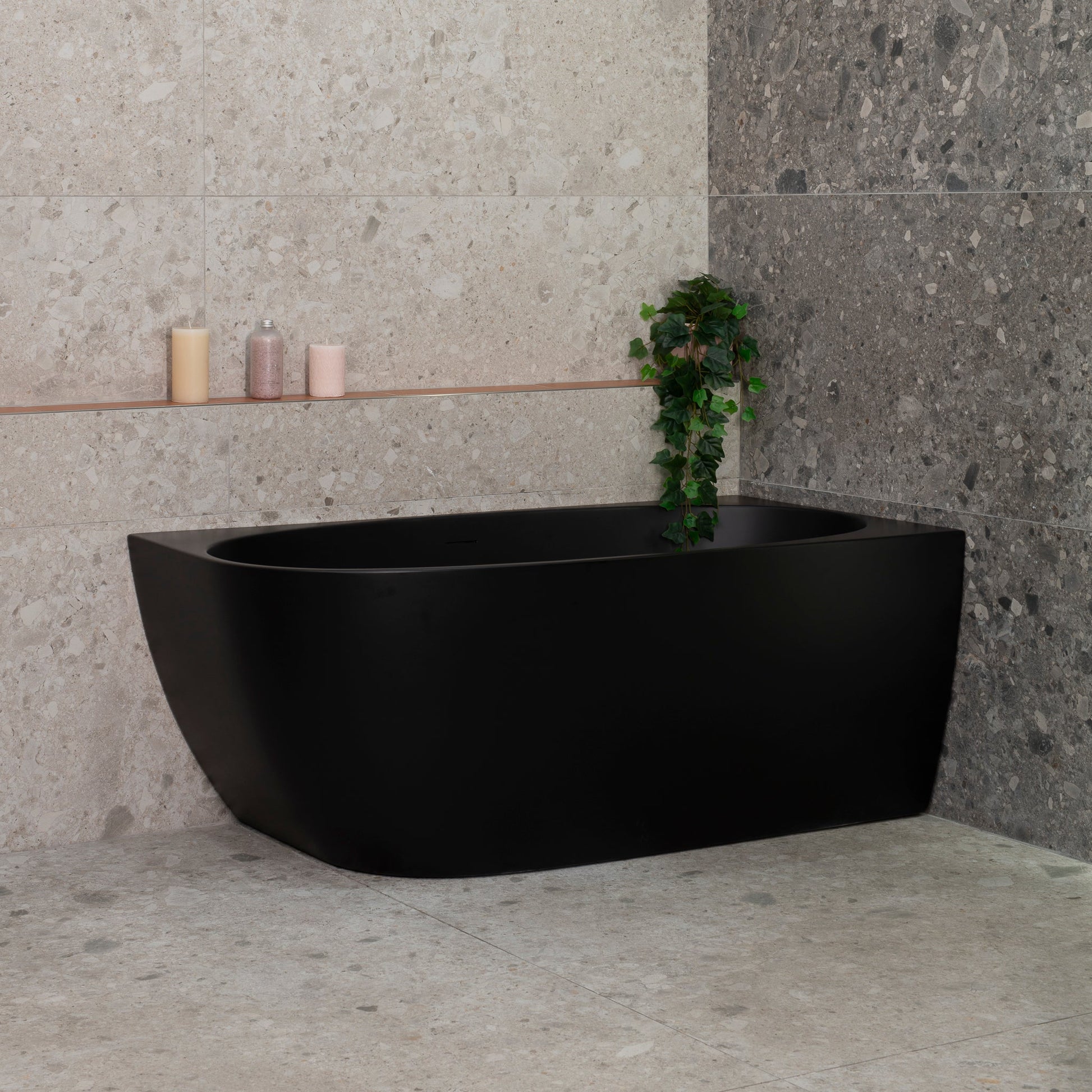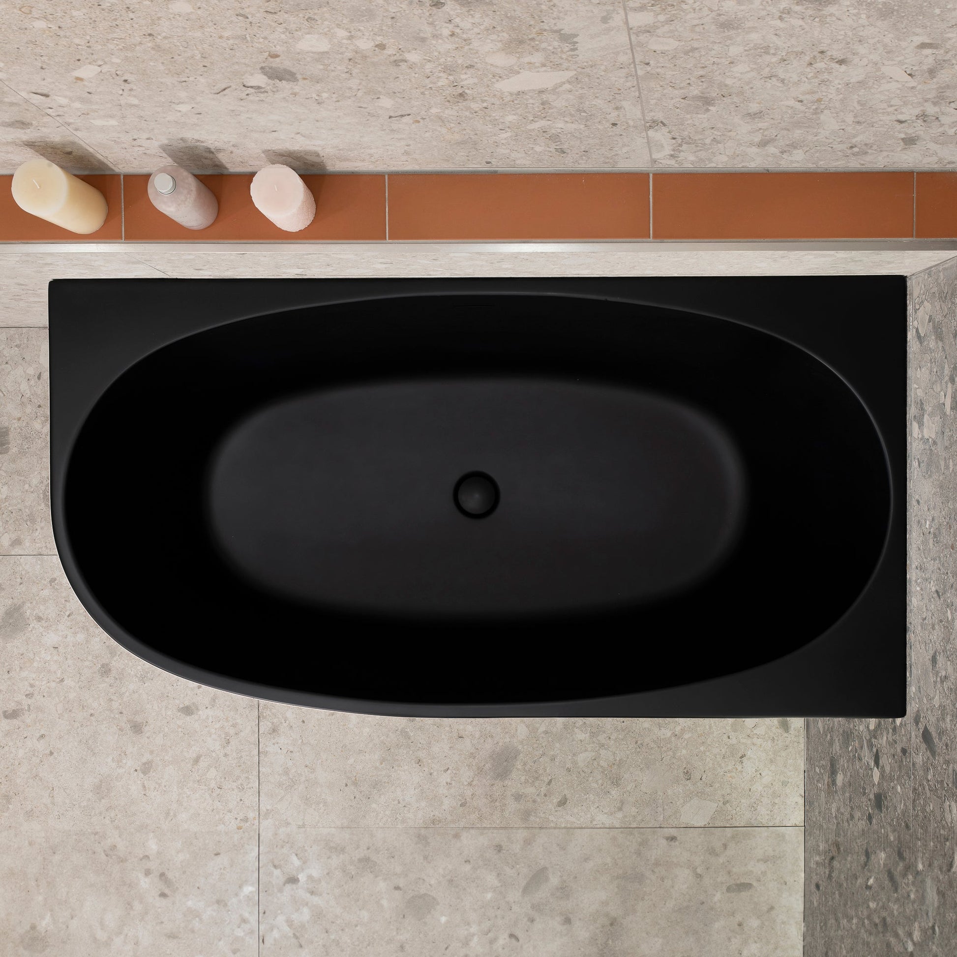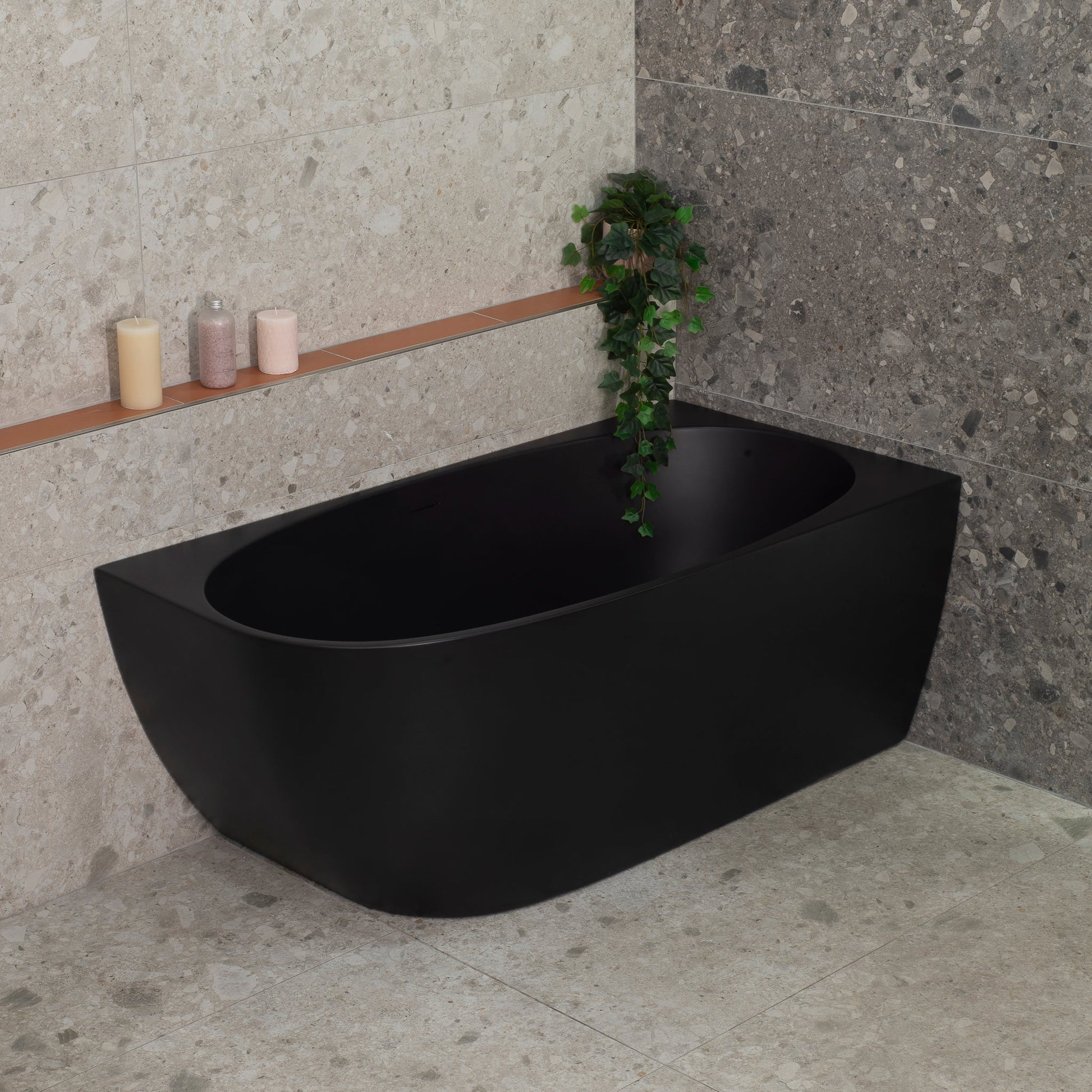 Byron Egg 55 inch Acrylic Freestanding Right Corner Bathtub, Matte Black