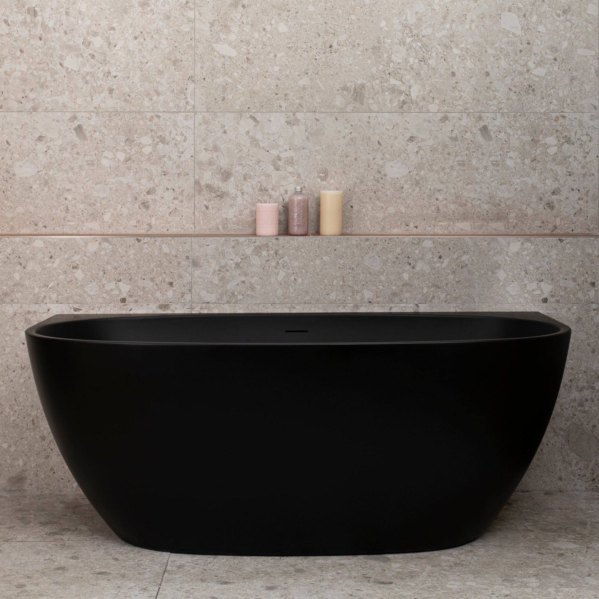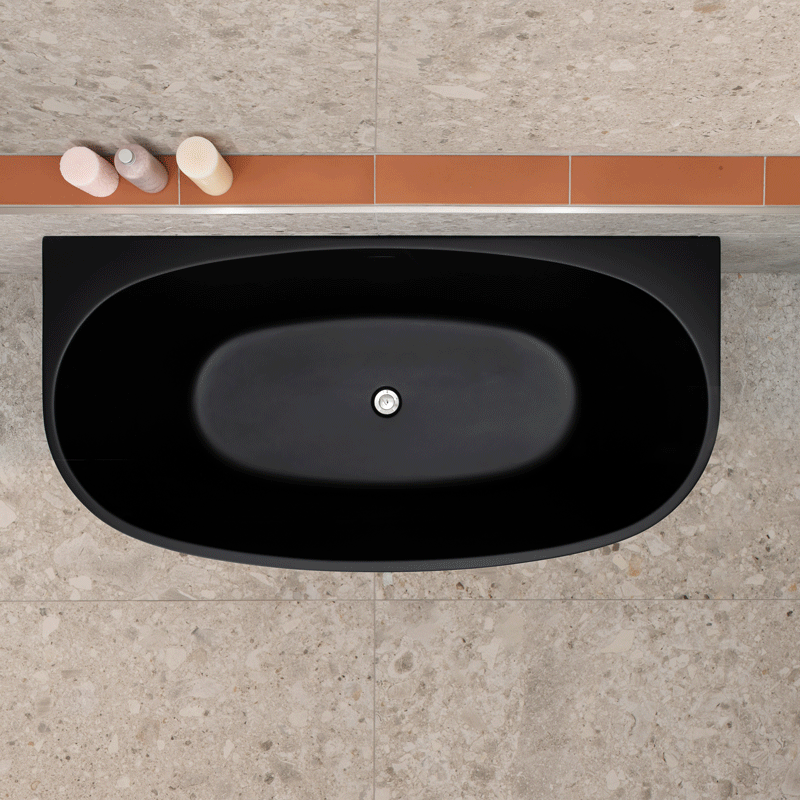Byron Egg 59 inch Acrylic Freestanding Back to Wall Bathtub, Matte Black