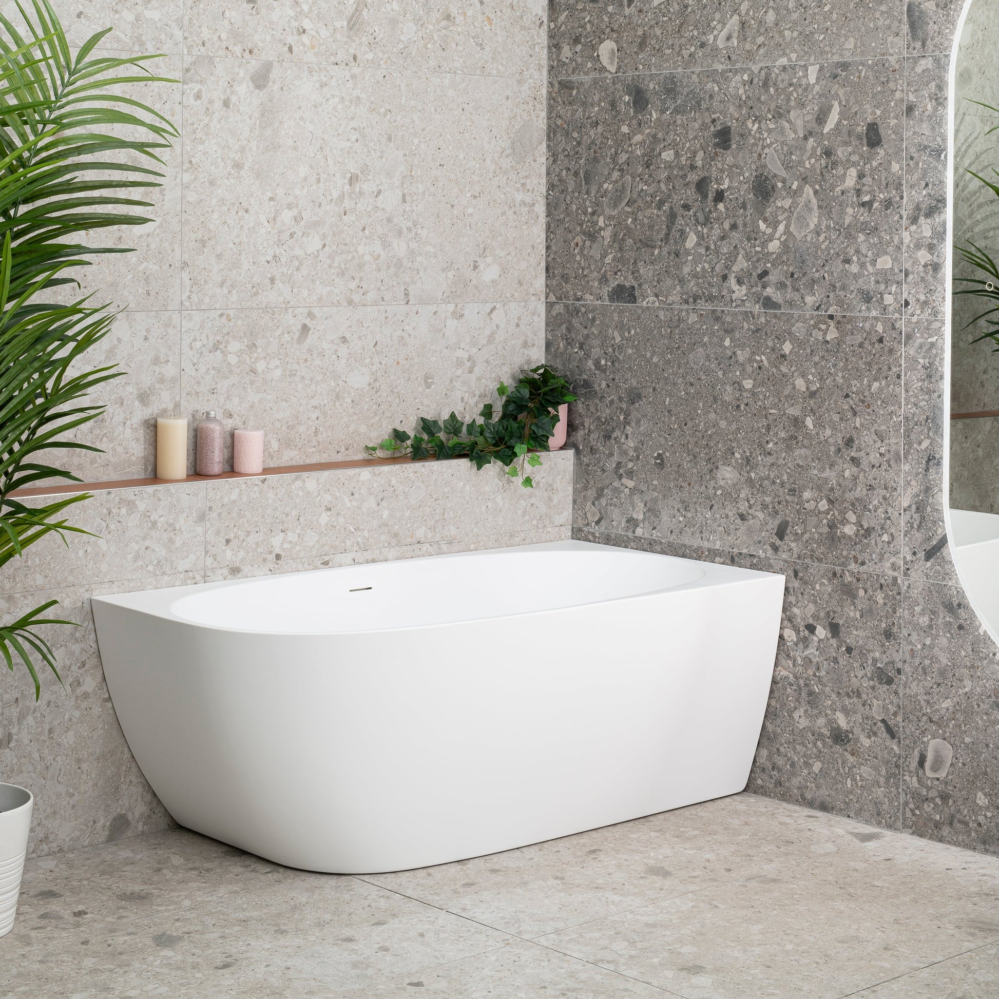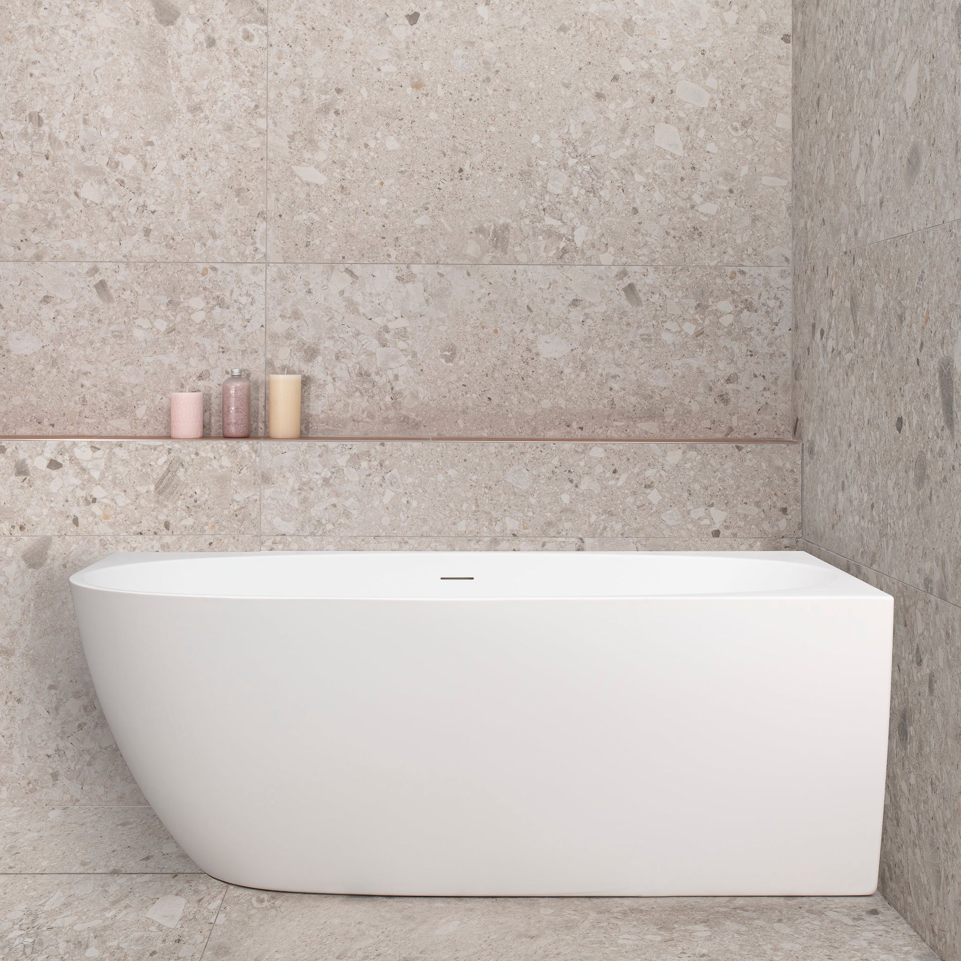 The unique curves of this corner bathtub embodies a harmonious blend of contemporary design and luxurious functionality. Perfectly positioned in a corner, it optimises space utilisation without compromising on aesthetics. With its innovative design and practical features, the Byron Egg corner bathtub is a symbol of refined relaxation and timeless beauty.