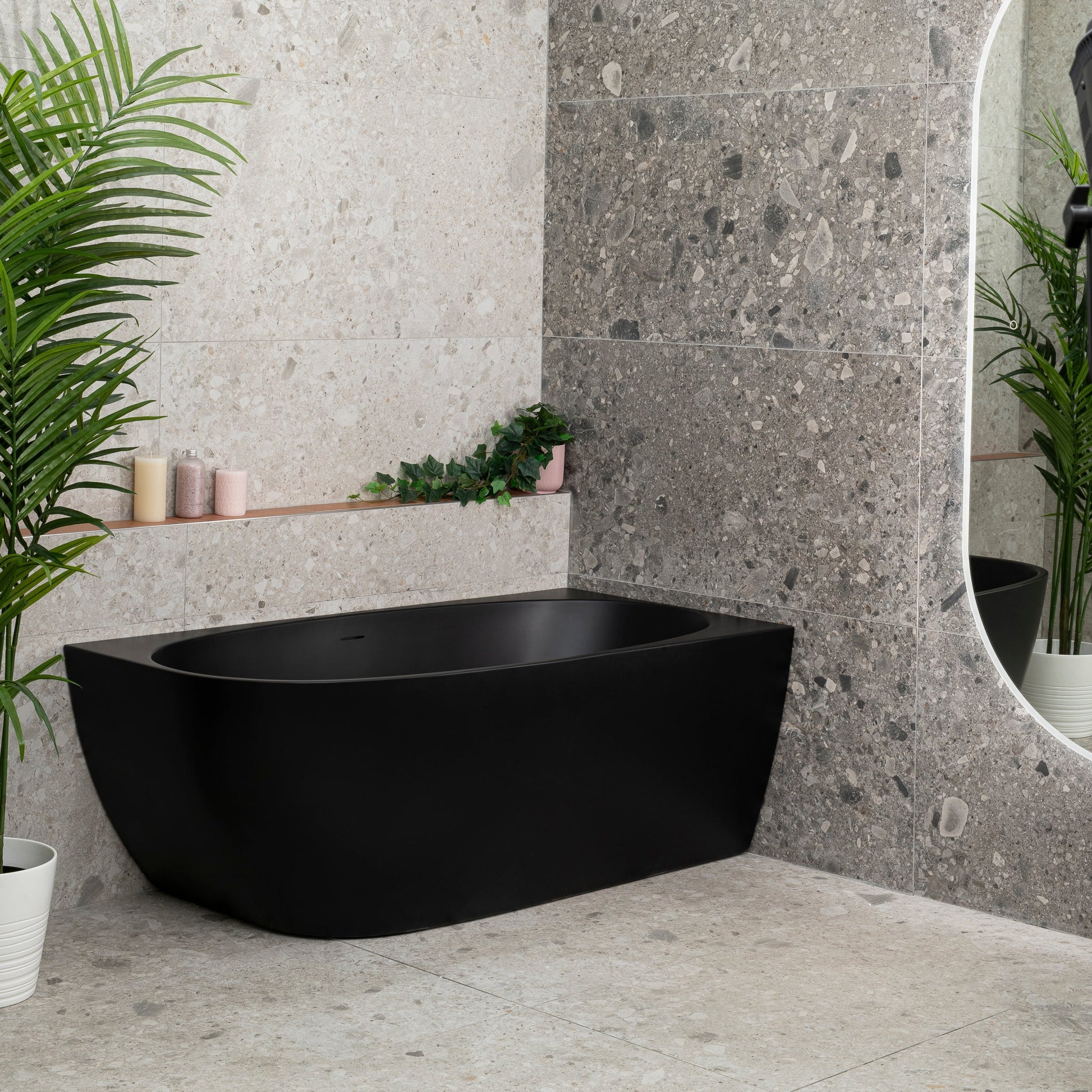 Byron Egg 59 inch Acrylic Freestanding Right Corner Bathtub, Matte Black