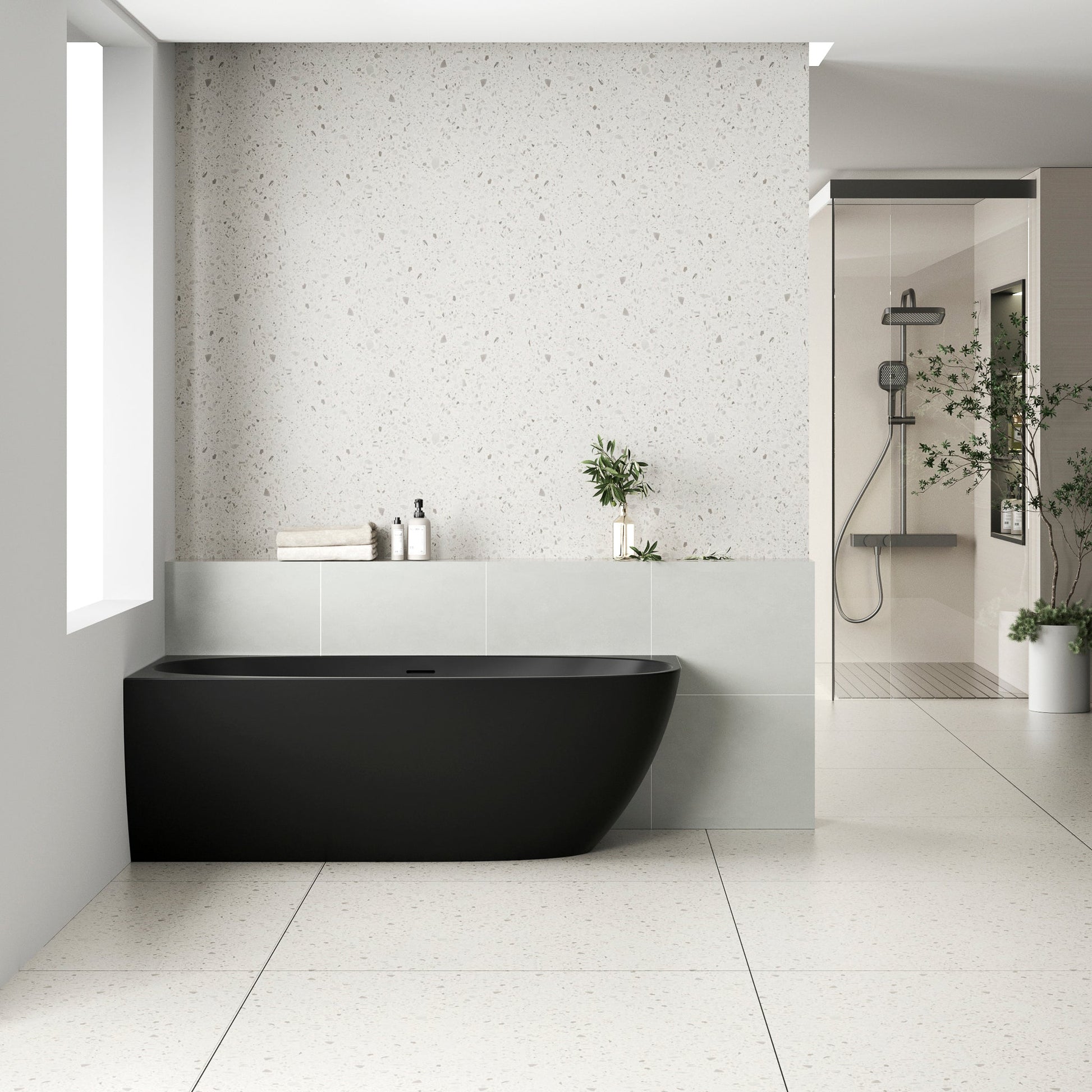 The unique curves of this corner bathtub embodies a harmonious blend of contemporary design and luxurious functionality. Perfectly positioned in a corner, it optimises space utilisation without compromising on aesthetics. With its innovative design and practical features, the Byron Egg corner bathtub is a symbol of refined relaxation and timeless beauty.