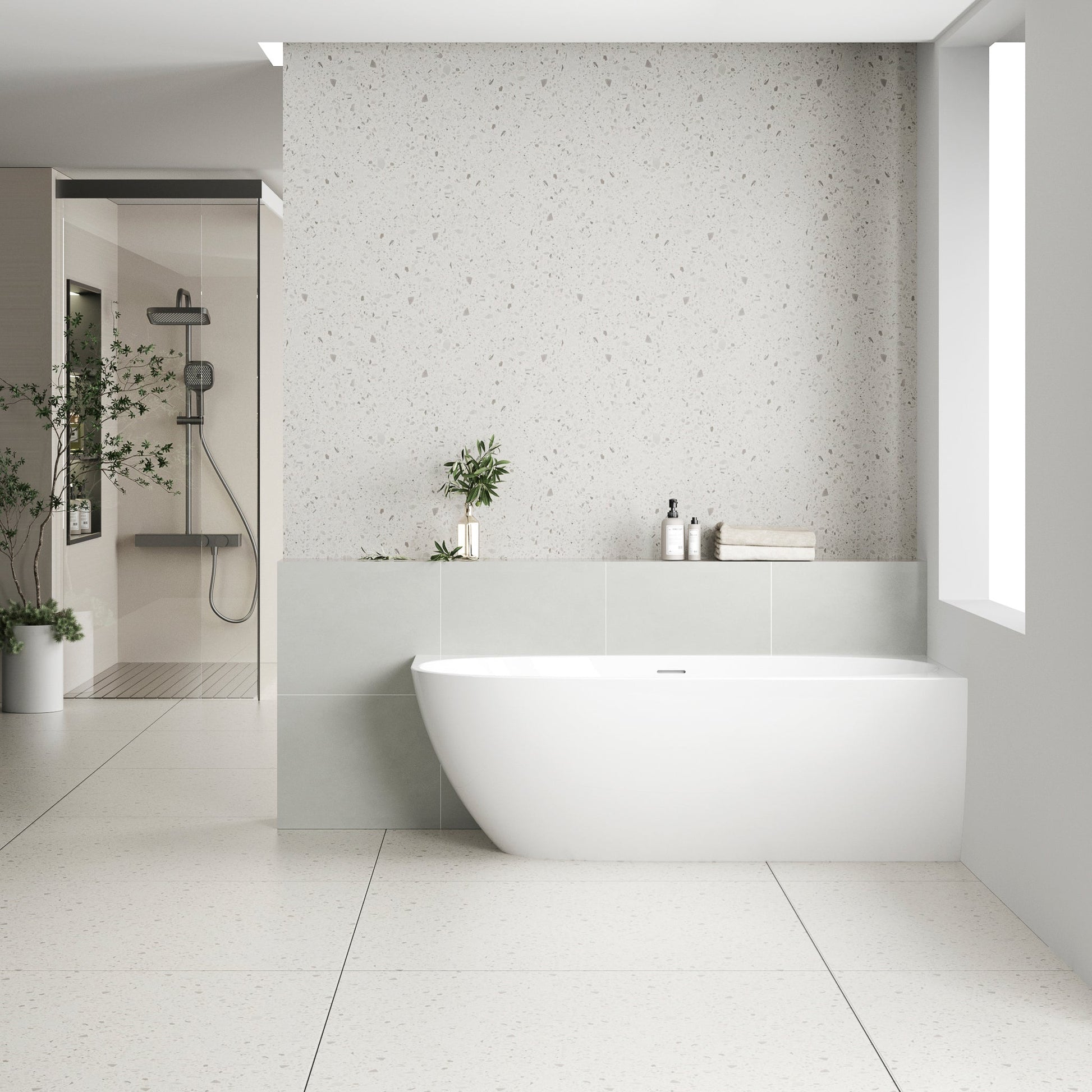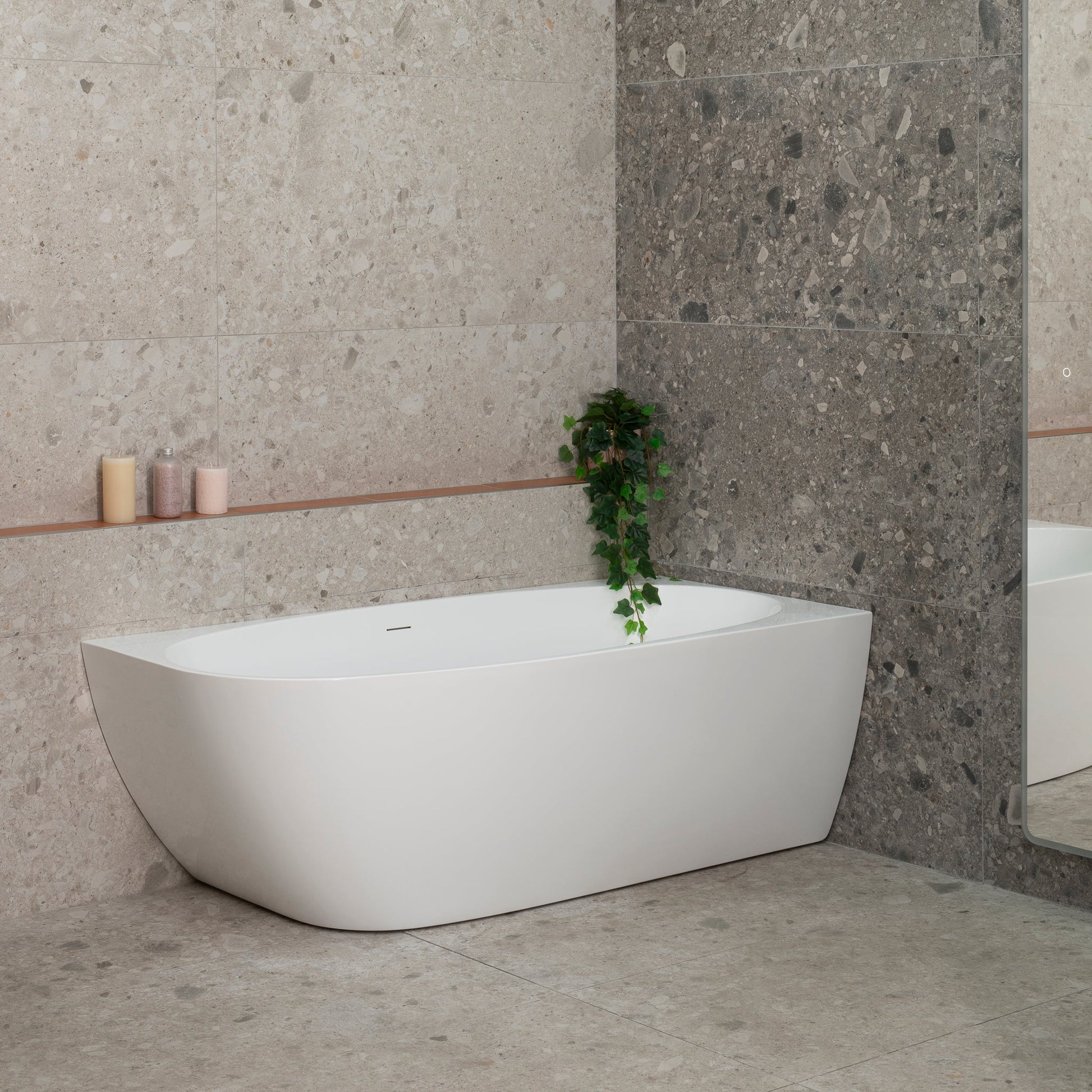 The unique curves of this corner bathtub embodies a harmonious blend of contemporary design and luxurious functionality. Perfectly positioned in a corner, it optimises space utilisation without compromising on aesthetics. With its innovative design and practical features, the Byron Egg corner bathtub is a symbol of refined relaxation and timeless beauty.