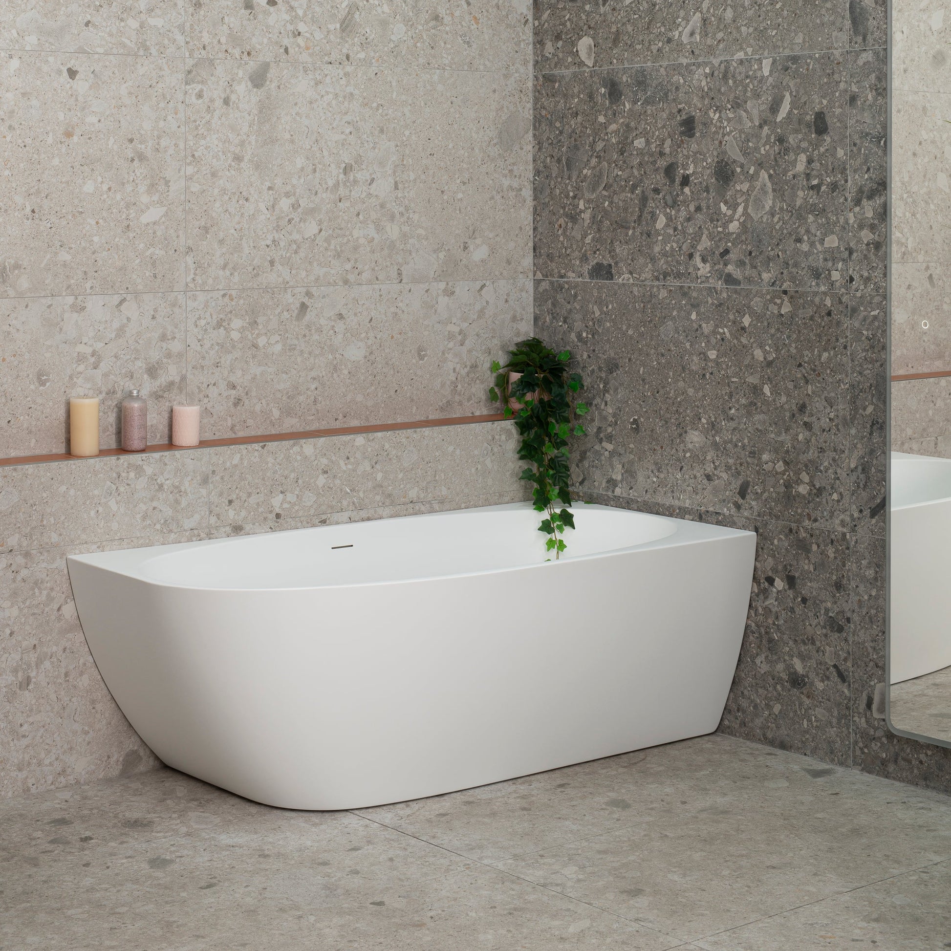 The unique curves of this corner bathtub embodies a harmonious blend of contemporary design and luxurious functionality. Perfectly positioned in a corner, it optimises space utilisation without compromising on aesthetics. With its innovative design and practical features, the Byron Egg corner bathtub is a symbol of refined relaxation and timeless beauty.