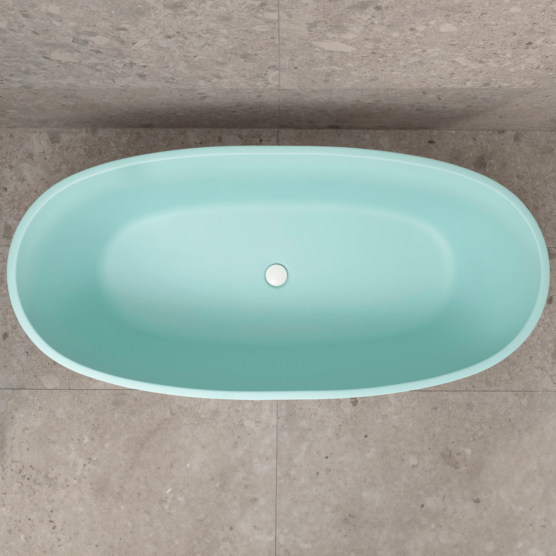 Byron Egg 67 inch Acrylic Freestanding Oval Bathtub, Matte Duck Egg Blue