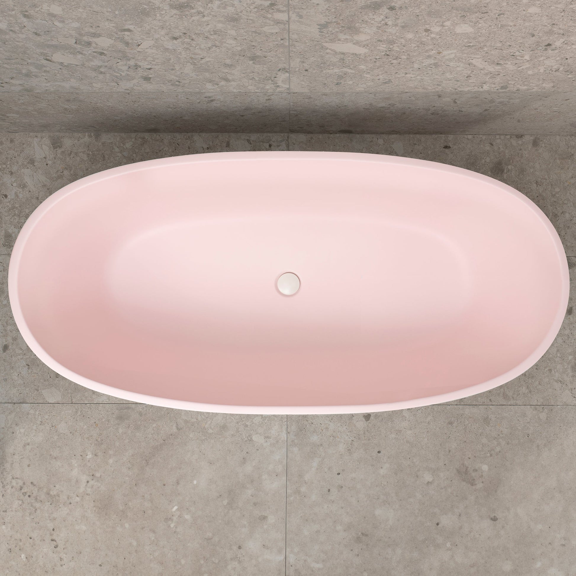 Byron Egg 67 inch Acrylic Freestanding Oval Bathtub, Matte Light Pink