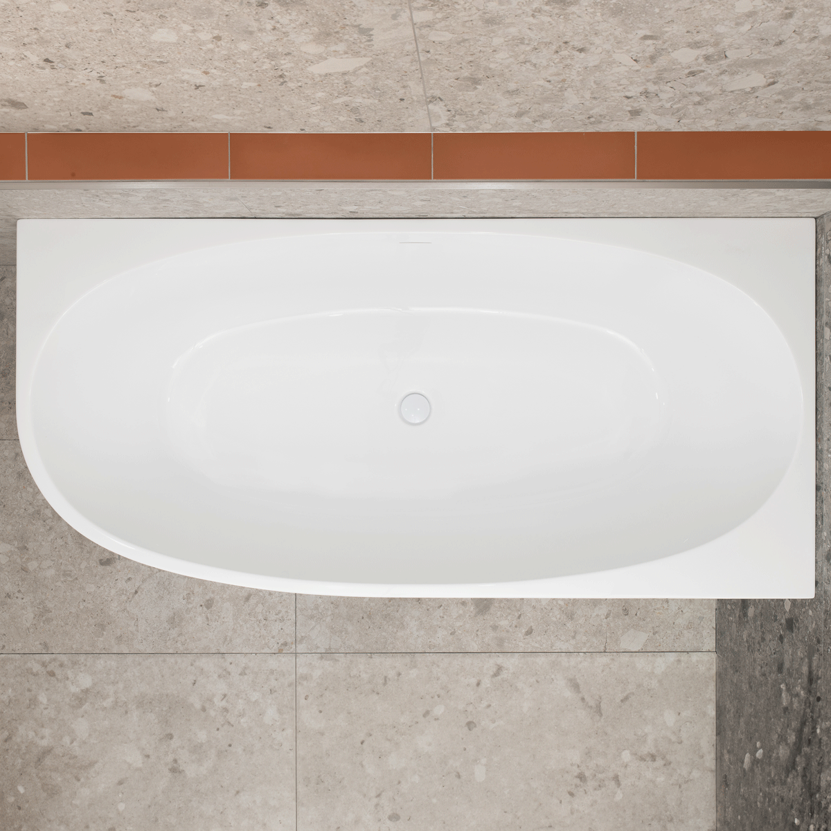 The unique curves of this corner bathtub embodies a harmonious blend of contemporary design and luxurious functionality. Perfectly positioned in a corner, it optimises space utilisation without compromising on aesthetics. With its innovative design and practical features, the Byron Egg corner bathtub is a symbol of refined relaxation and timeless beauty.