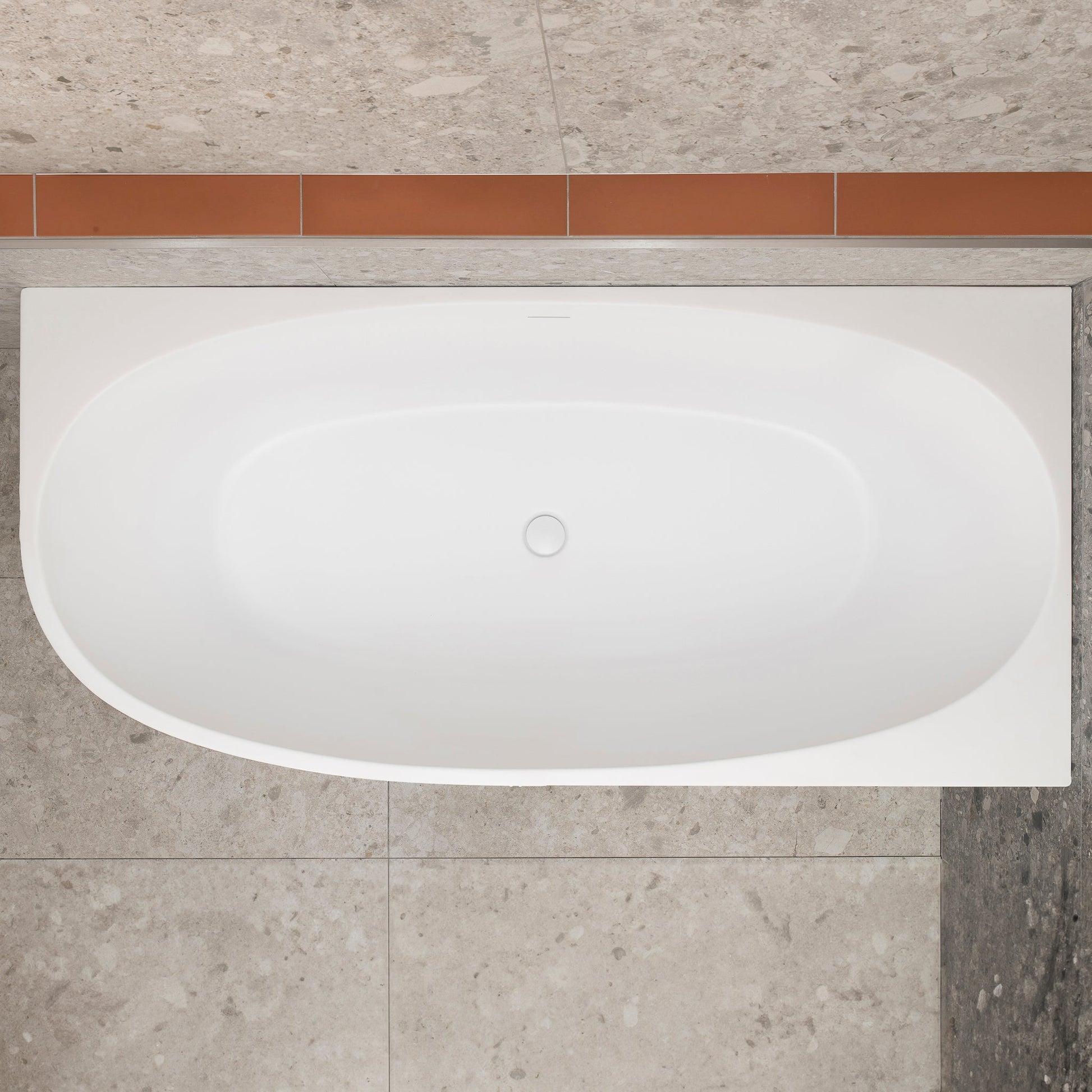 The unique curves of this corner bathtub embodies a harmonious blend of contemporary design and luxurious functionality. Perfectly positioned in a corner, it optimises space utilisation without compromising on aesthetics. With its innovative design and practical features, the Byron Egg corner bathtub is a symbol of refined relaxation and timeless beauty.