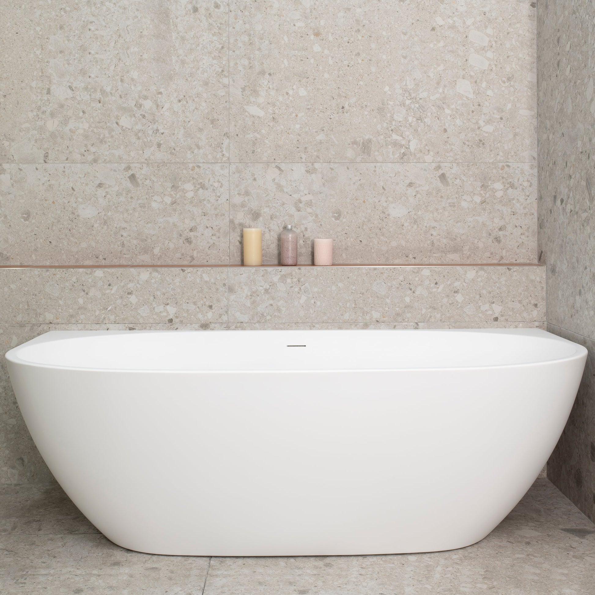 The new Byron Egg Back to Wall bath, with its modern curves, is a striking fusion of form and function, bringing a contemporary touch to bathroom design.