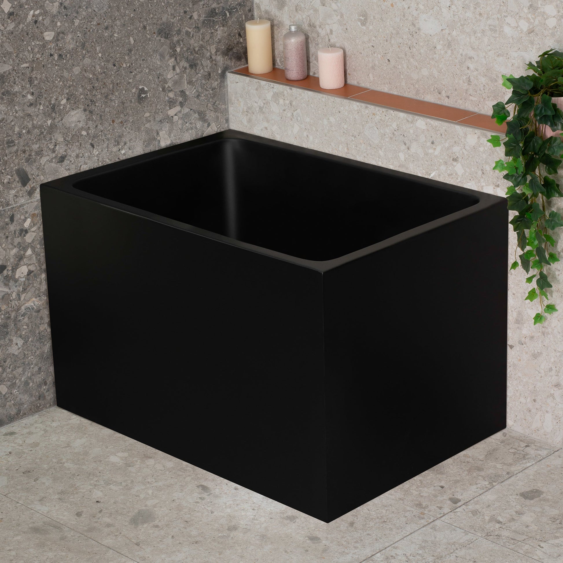 Cubix Extra Height 39 inch Acrylic Freestanding Japanese Soaking Bathtub, Matte Black