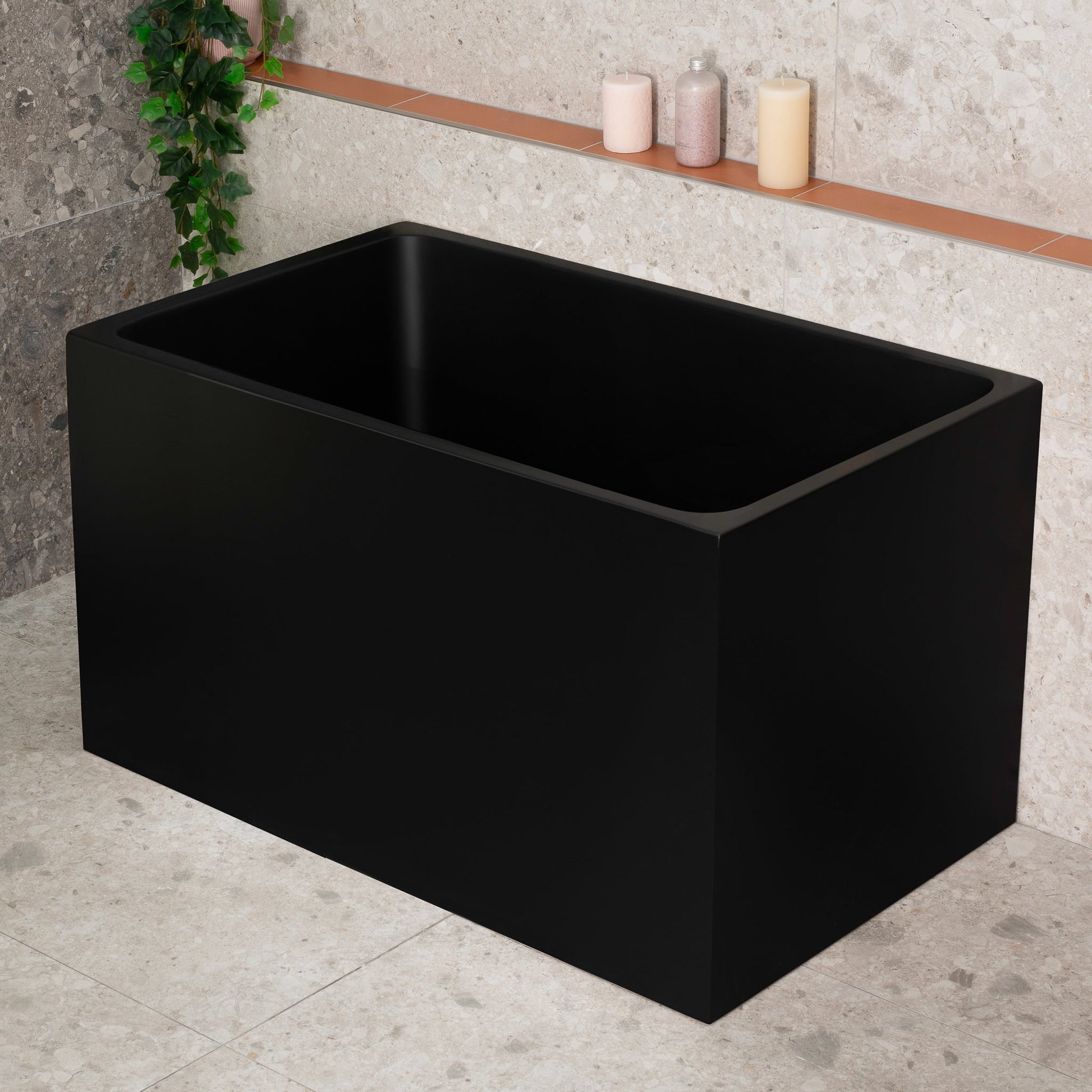 Cubix Extra Height 43 inch Acrylic Freestanding Japanese Soaking Bathtub, Matte Black