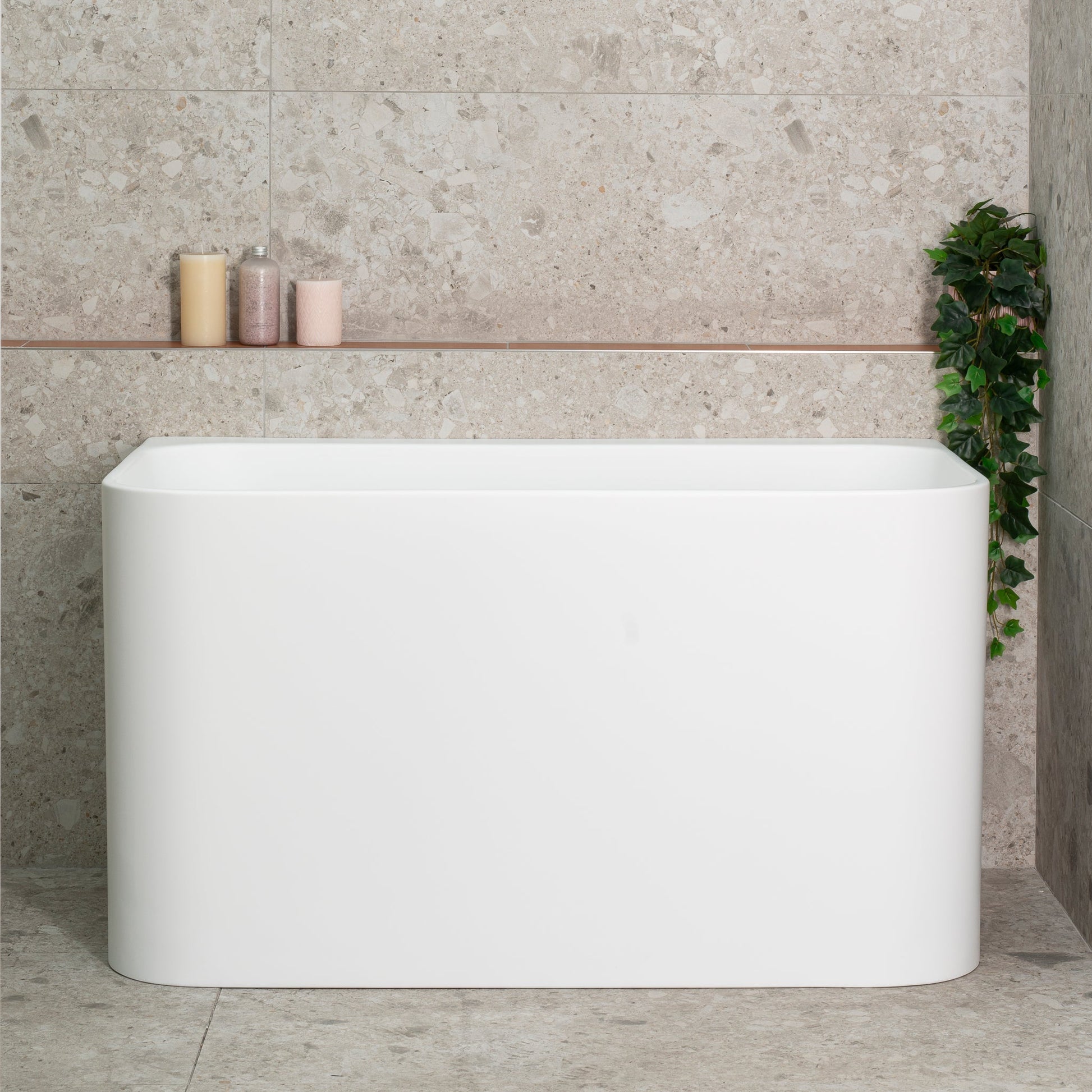 Estus 47 inch Acrylic Freestanding Back to Wall Japanese Soaking Bathtub with Seat, Matte White