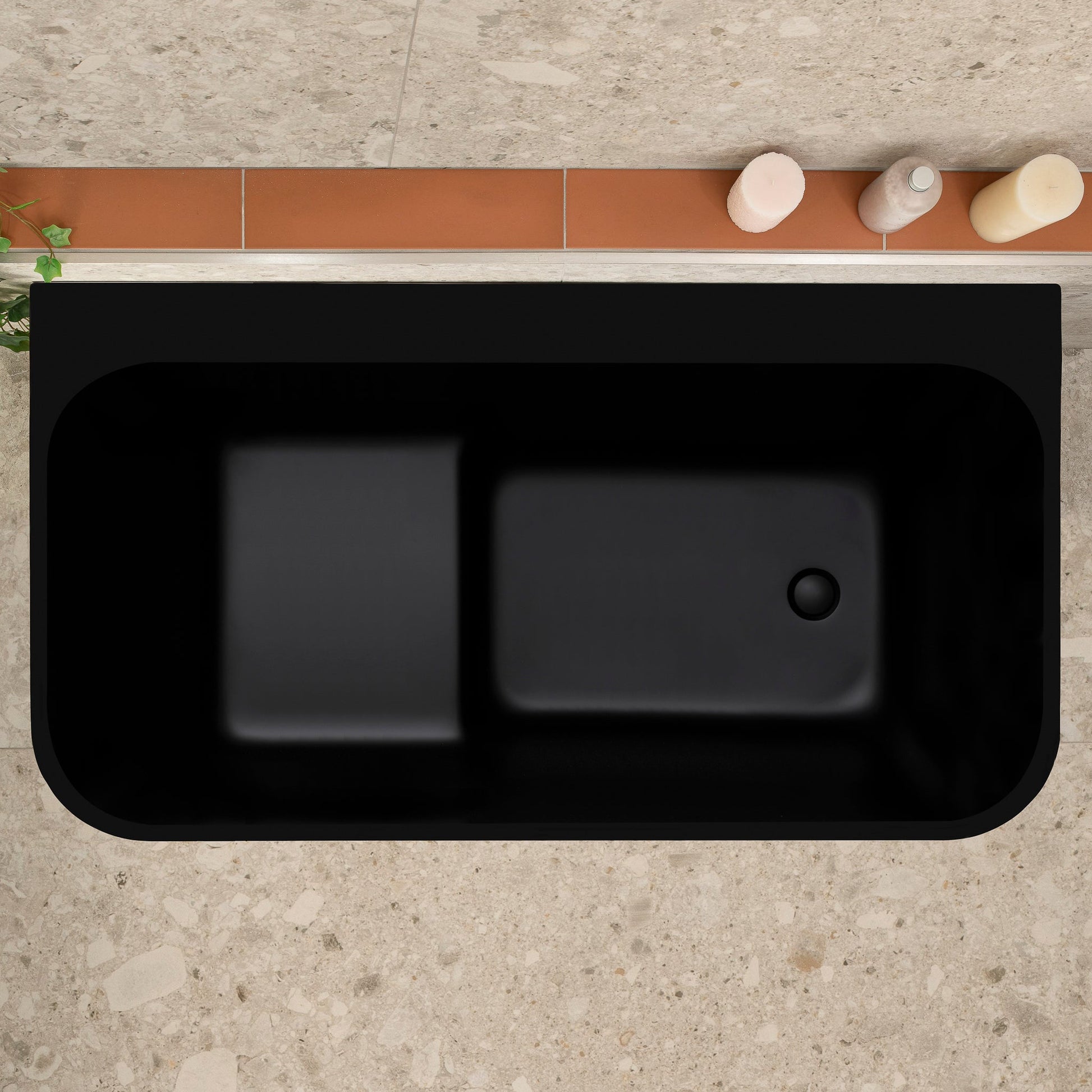 Estus 51 inch Acrylic Freestanding Back to Wall Japanese Soaking Bathtub with Seat, Matte Black