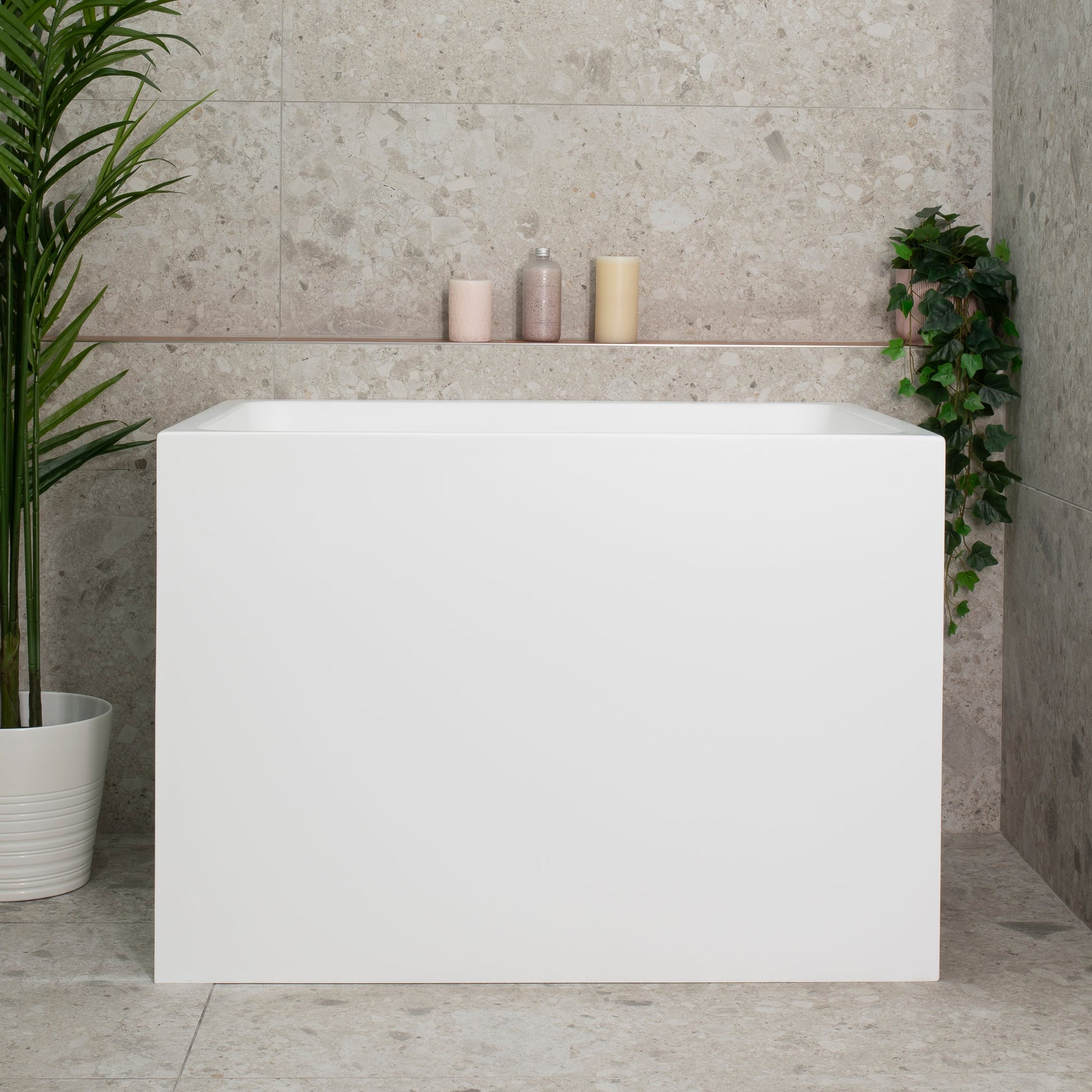 Hicube Multifit 39 inch Acrylic Freestanding Japanese Freestanding Bathtub with Seat, Matte White
