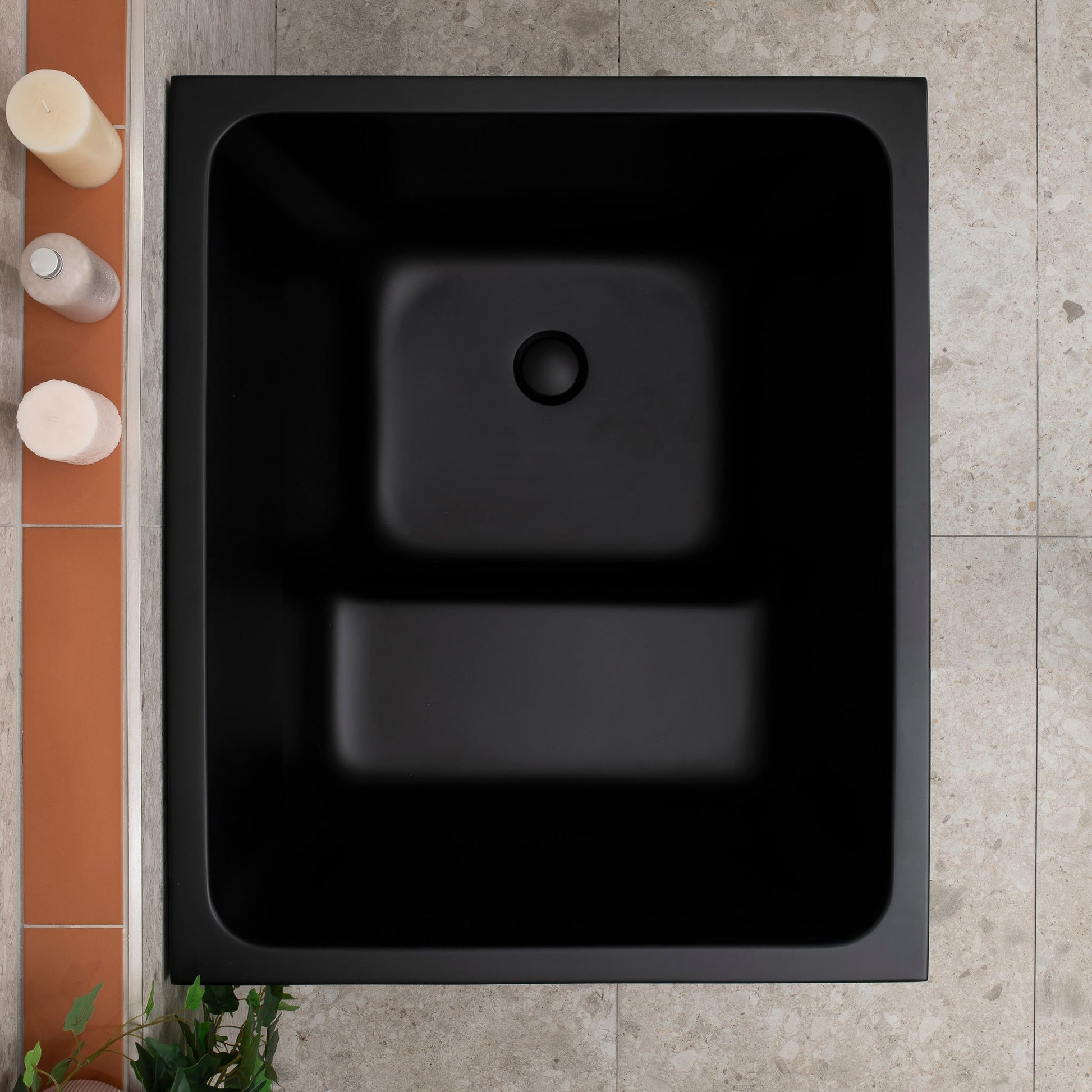 Hicube Multifit 35 inch Acrylic Freestanding Japanese Freestanding Bathtub with Seat, Matte Black