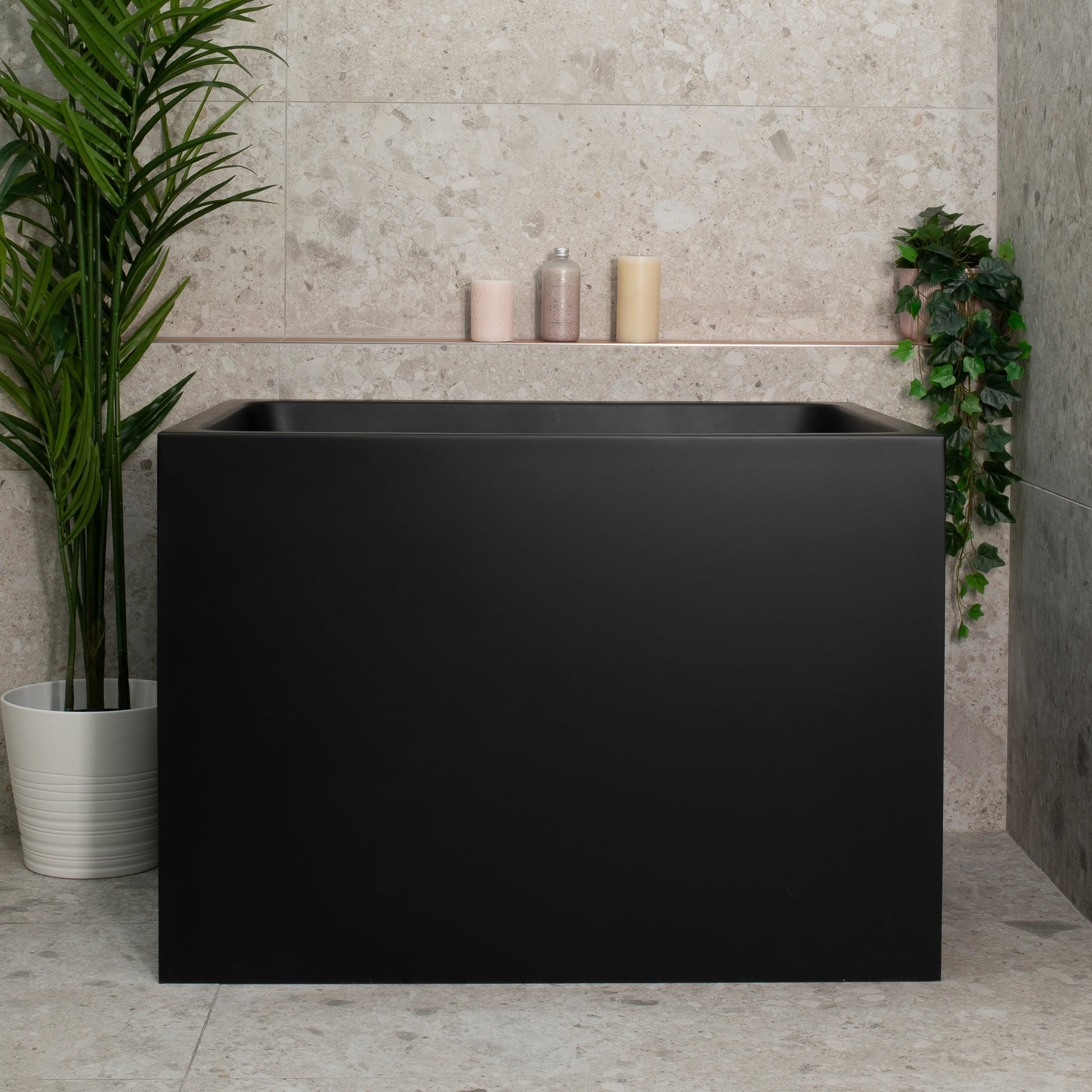 Hicube Multifit 39 inch Acrylic Freestanding Japanese Freestanding Bathtub with Seat, Matte Black