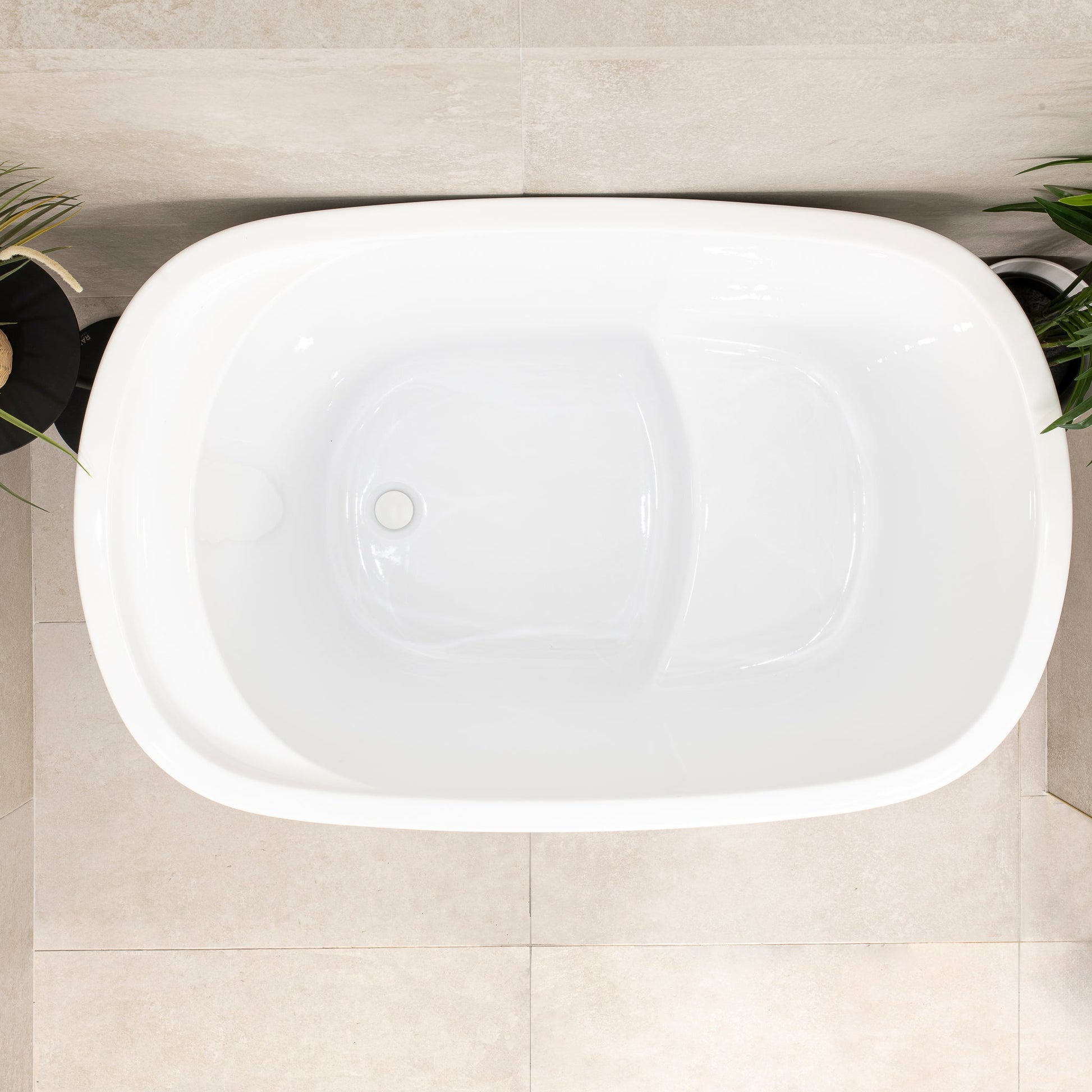 Ofuro 47 inch Acrylic Freestanding Extra Height Japanese Soaking Bathtub with Seat, Gloss White