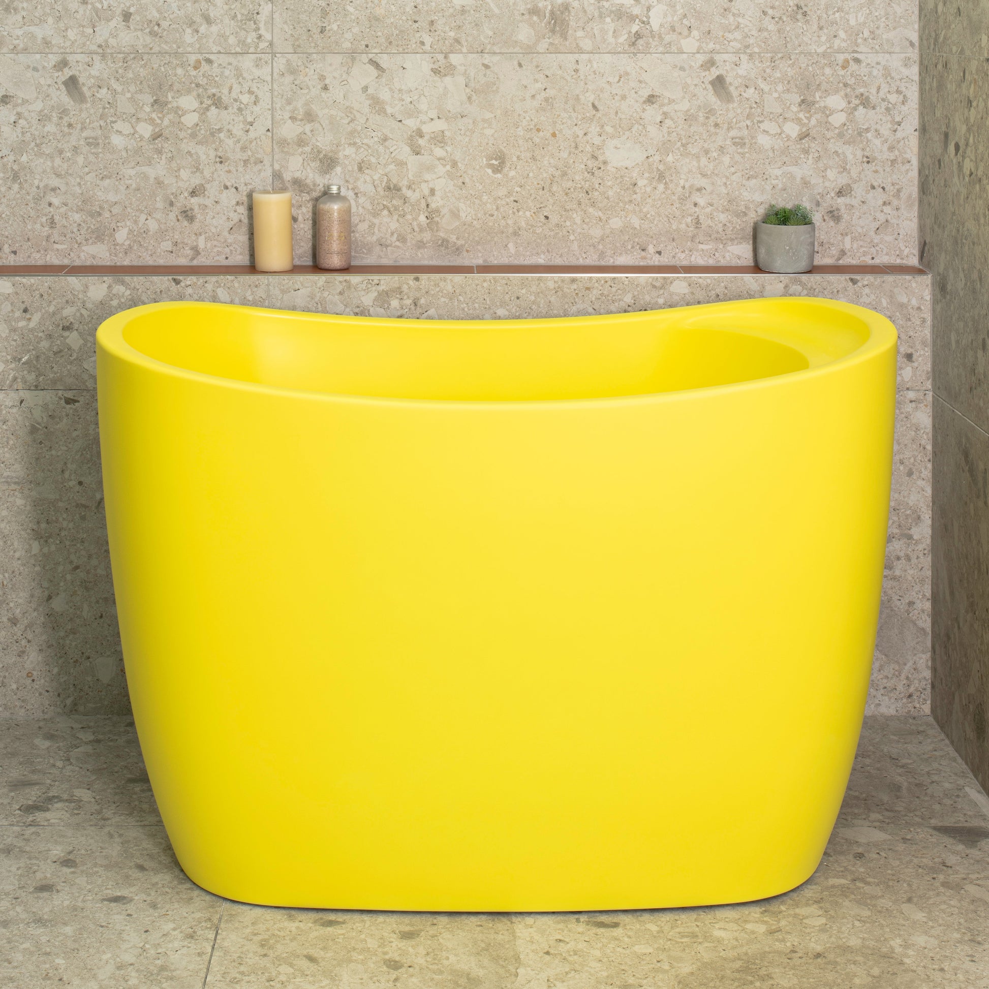 Ofuro 47 inch Acrylic Freestanding Extra Height Japanese Soaking Bathtub with Seat, Matte Lemon Meringue