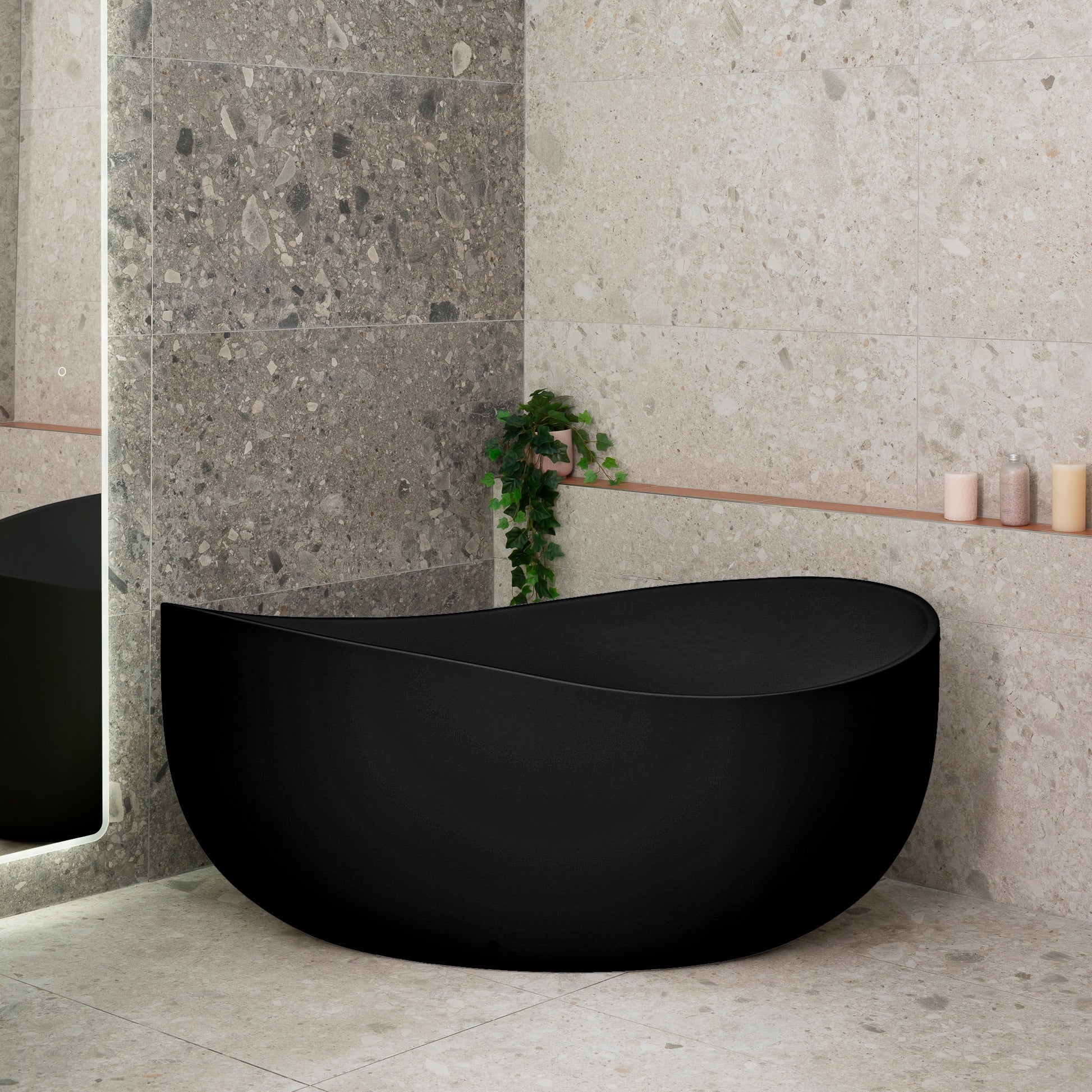 Wave Oval 63 inch Acrylic Freestanding Wide Bathtub, Matte Black